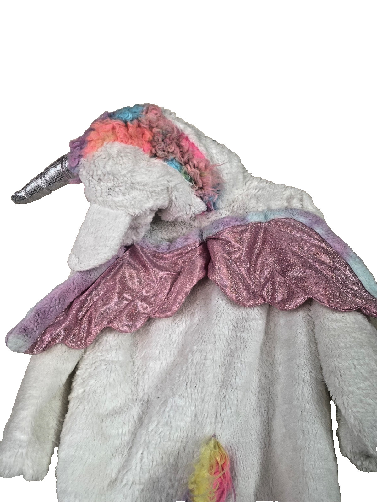 Girl's Unicorn Faux Fur White Rainbow Jumpsuit Halloween Costume Play Size 4/5 T