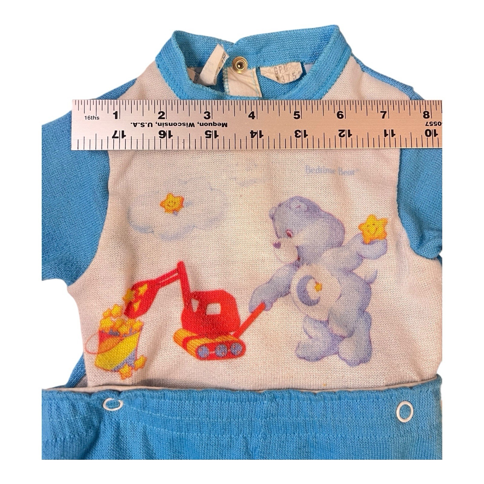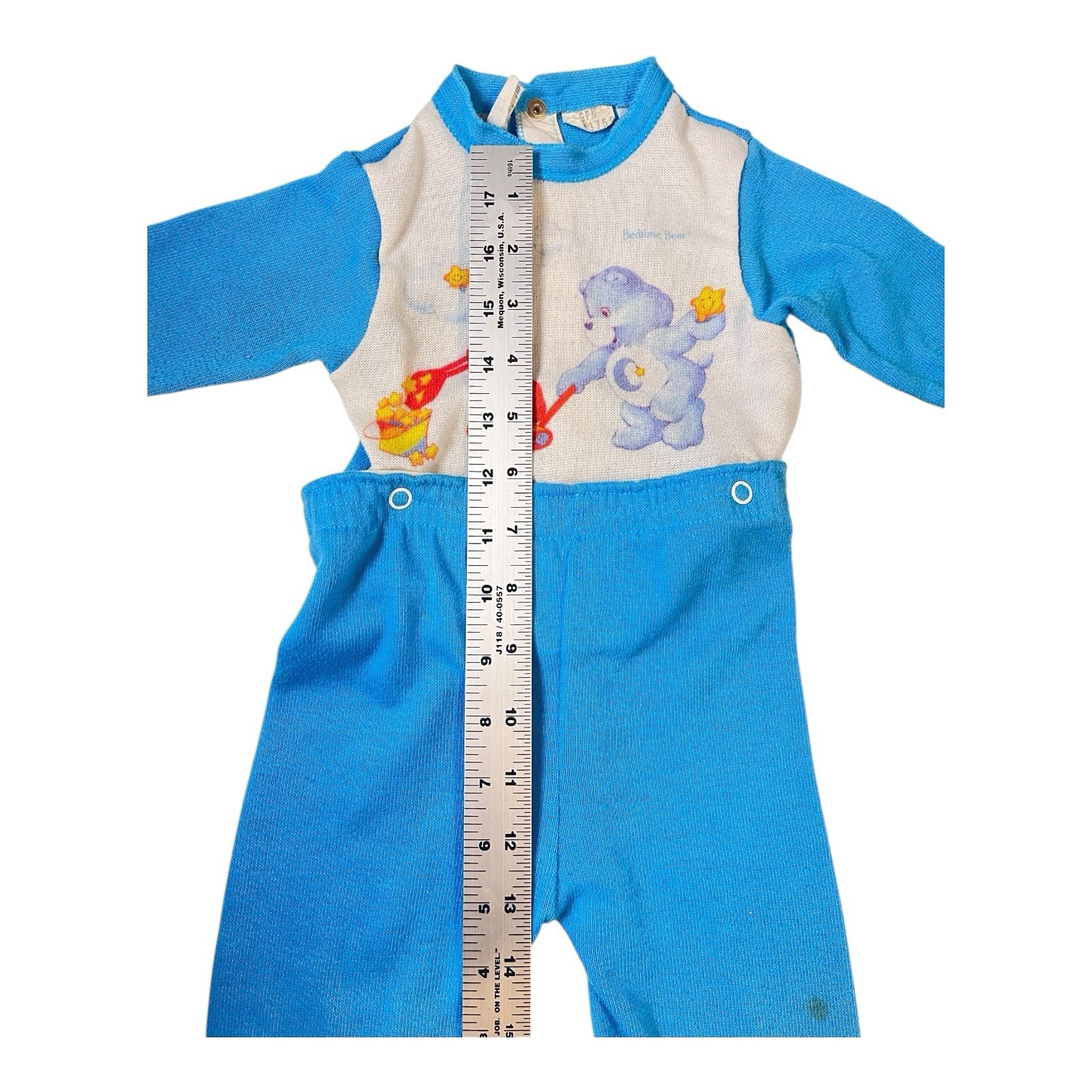 Vtg 80s Care Bear Bedtime Bear Pajamas 2 Piece Set w/ Footies Toddler Sz 12 Mths