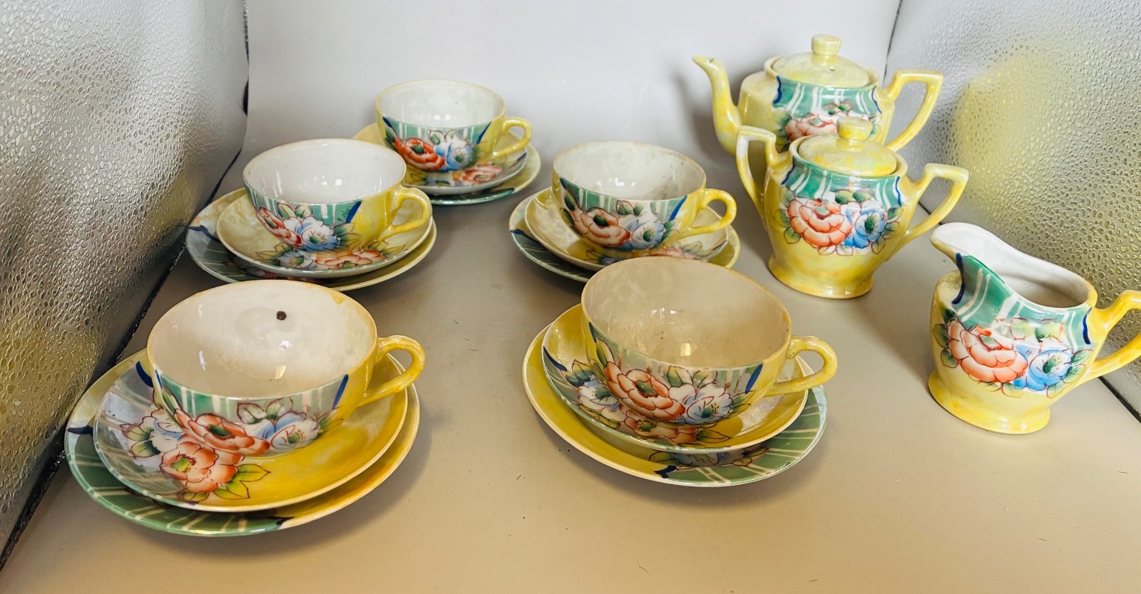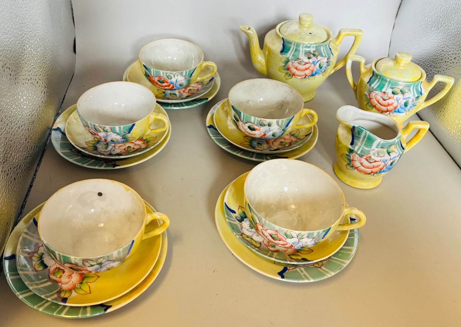 1940s Hand Painted Japanese Child's Tea Set - 18 Pieces