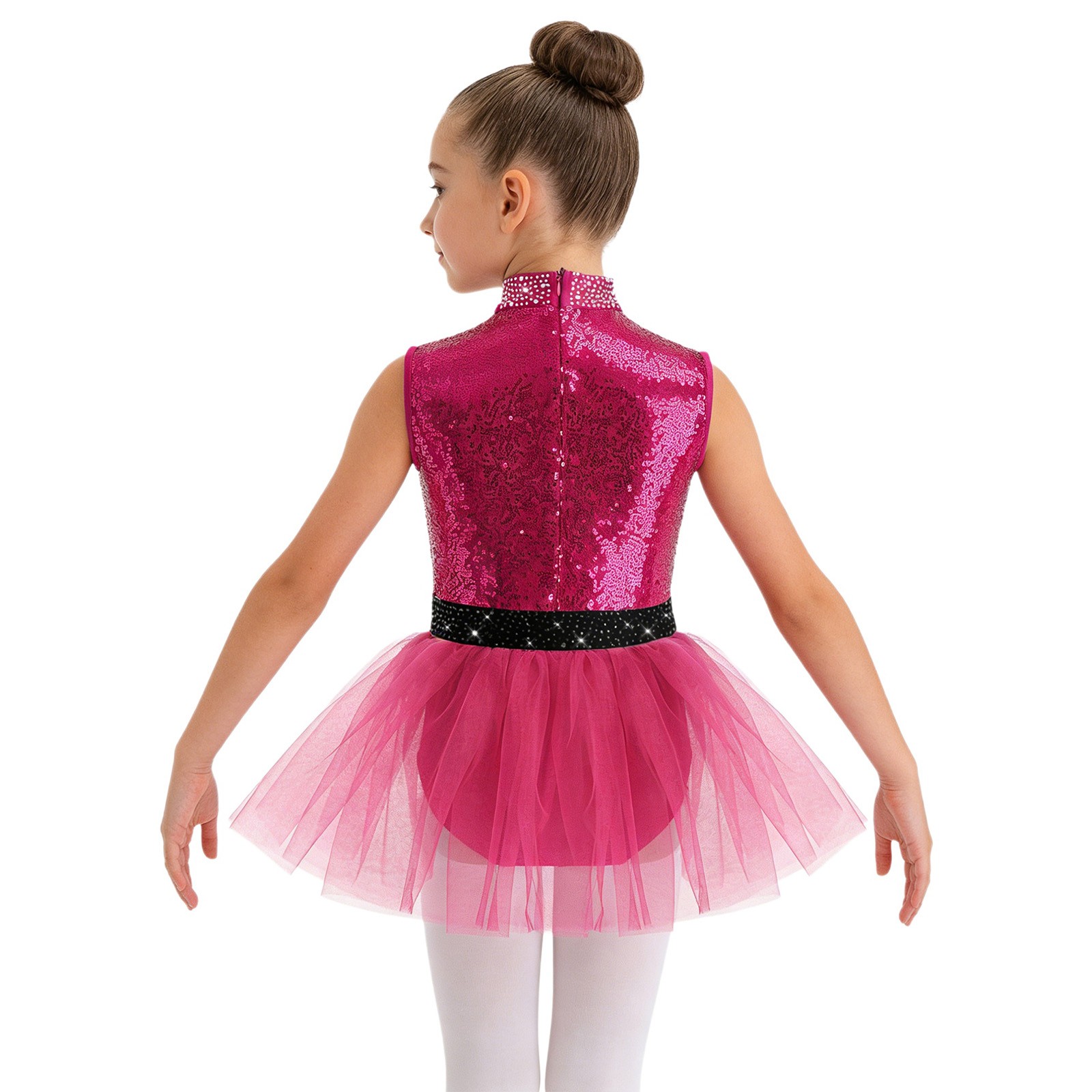 Girls Sequin Ballroom Dance Dress Mock Neck Tutu Leotard Competition Dancewear