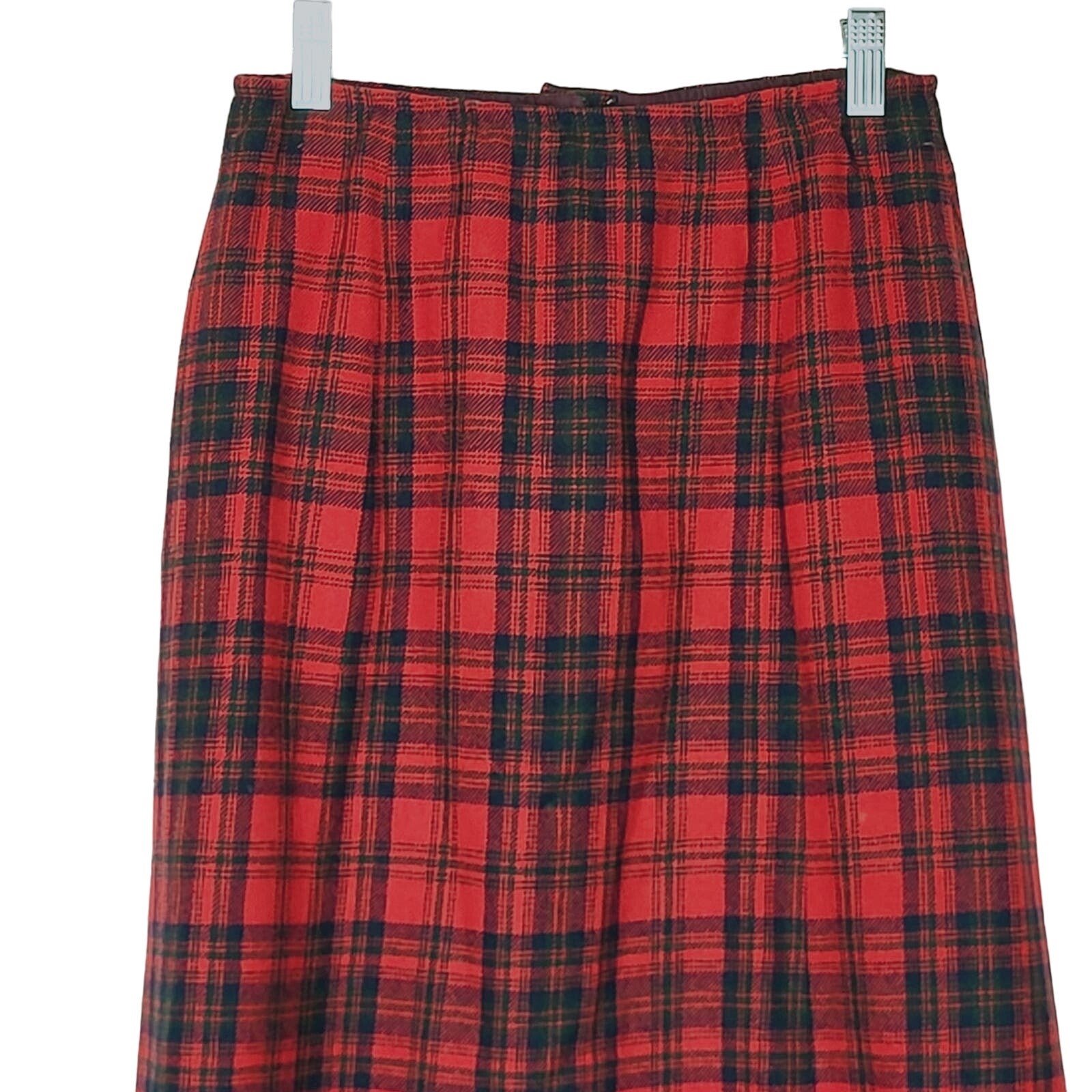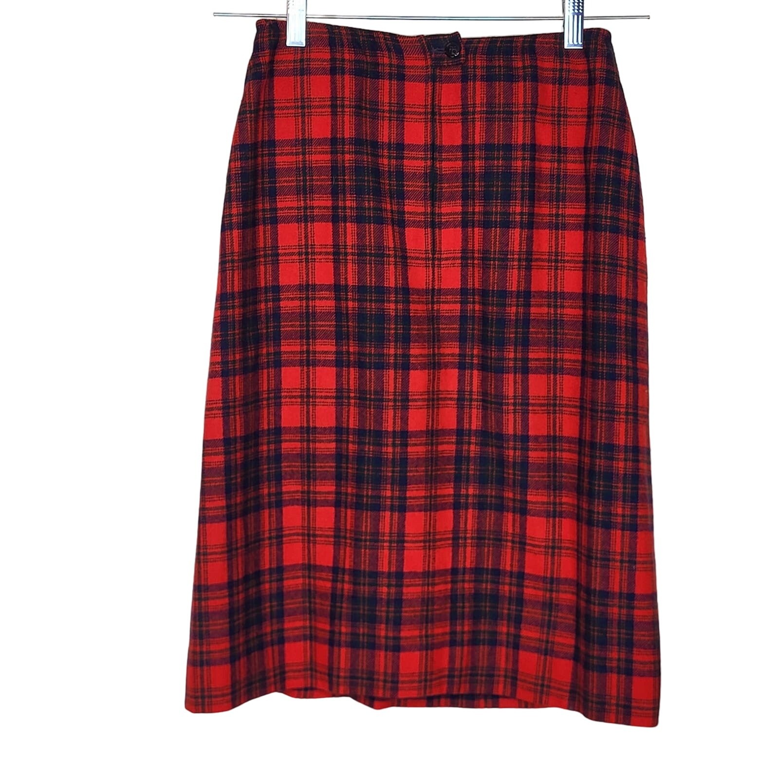 Vintage 70s Pendleton Pure Virgin Wool Red Black Tartan Plaid A-Line Skirt Sz 10