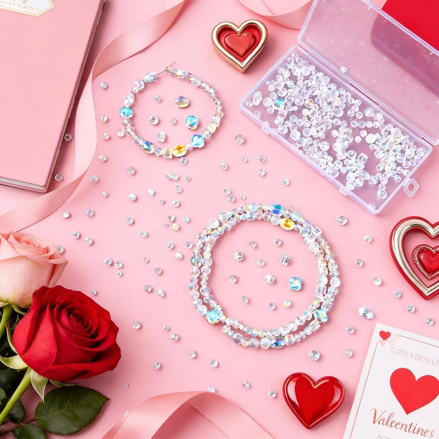 636Pcs Glass Beads for Jewelry Making, Assorted Crystal Beads with Loose Beads f
