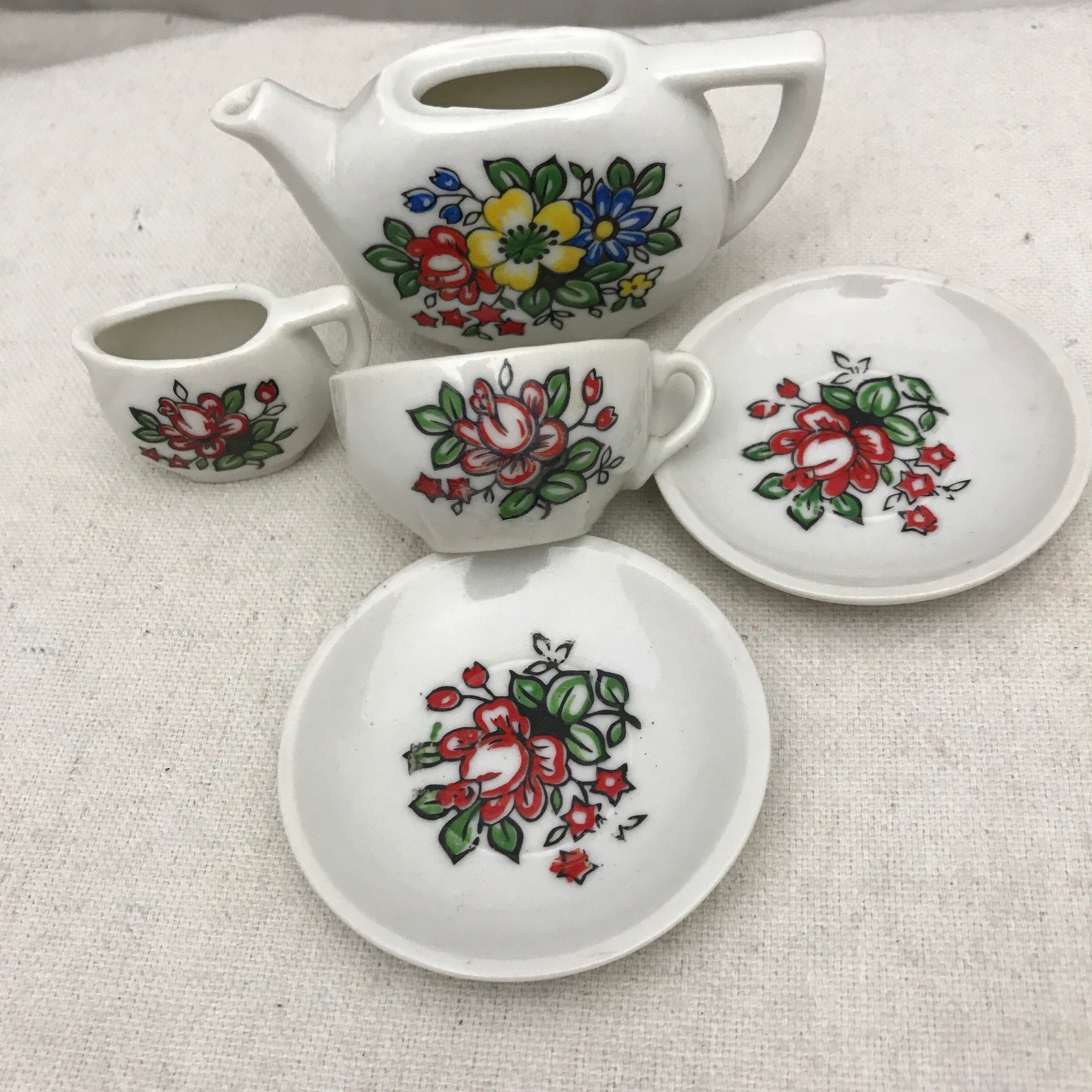 Vintage Miniature Floral Tea Set: 5-Piece Doll Toy, Made in Japan