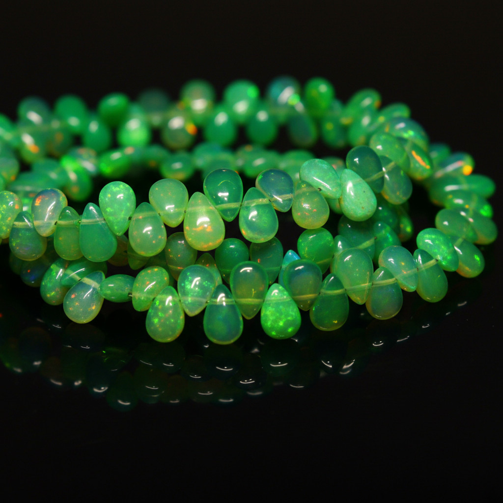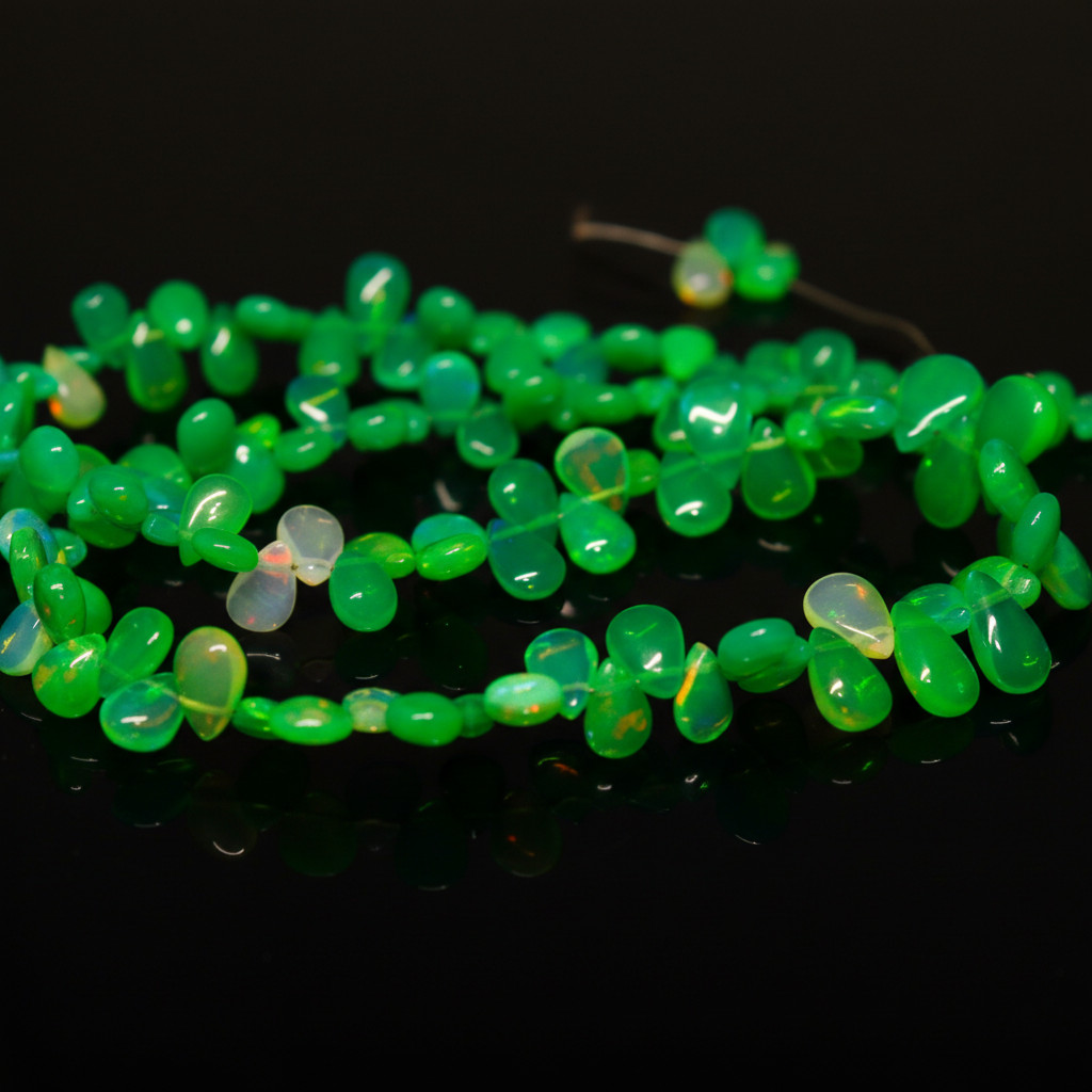 Ethiopian Green Opal Pear Beads 4 12mm 8 Strand Fire Gemstone