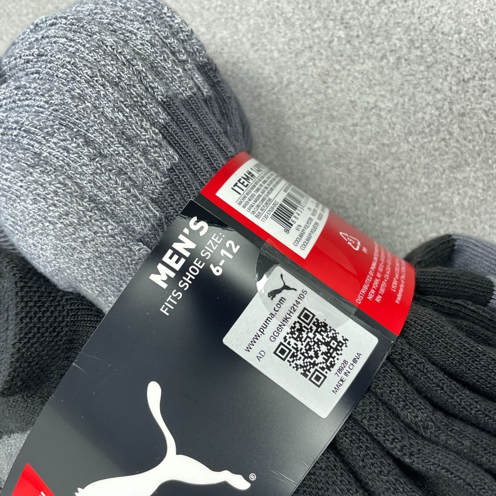 Puma Men's 6-12 Gray Black 10 Pair No Show Socks P0253