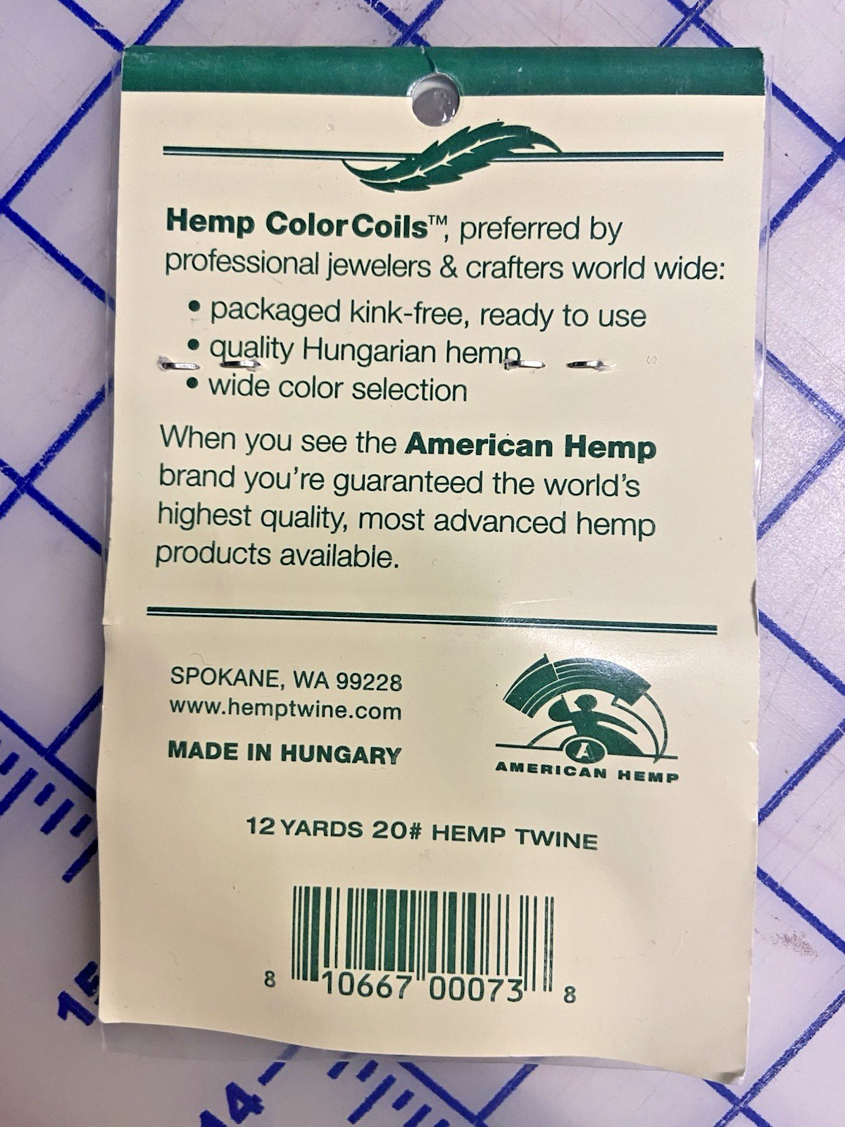 Hemp Color Cord / Twine - 12 yards - 20 - NEW - for scrapbooks, bracelets, etc.
