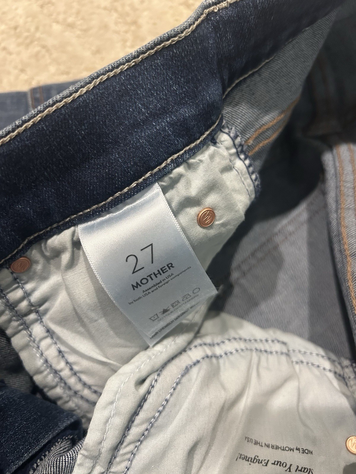 как выглядит MOTHER womans dark navy wash High waisted runaway denim jeans, SZ 27, BNWT фото