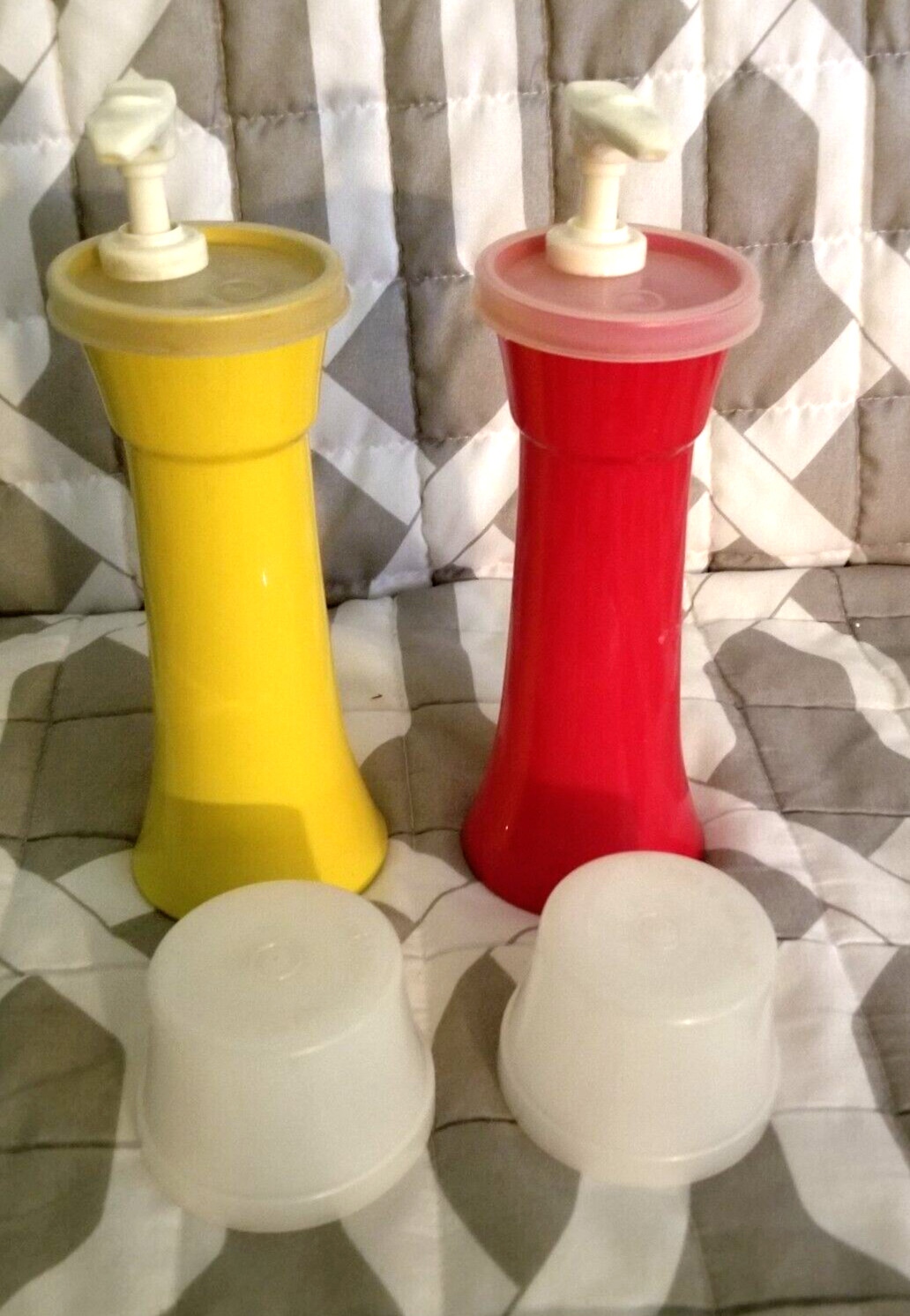 Tupperware Ketchup Mustard Pump Dispensers Containers With Lids Classic Easy