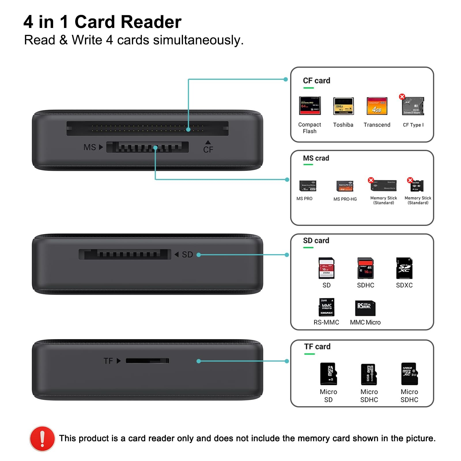 как выглядит Memory Card Reader, BENFEI 4in1 USB 3.0 and USB-C to SD Micro SD MS CF Card Read фото