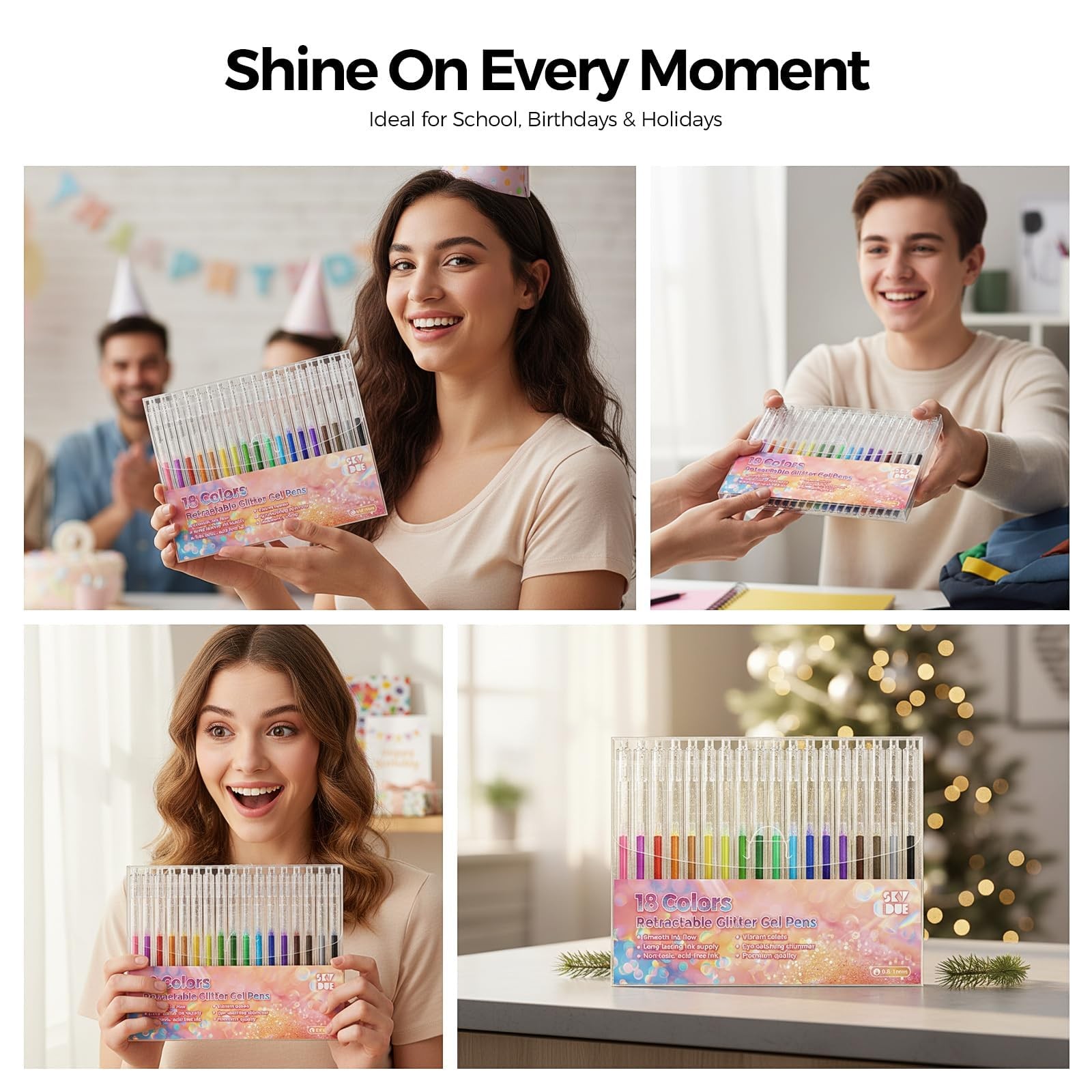 18 Color Glitter Gel Pens Retractable Sparkle Pens for Coloring Journal DIY