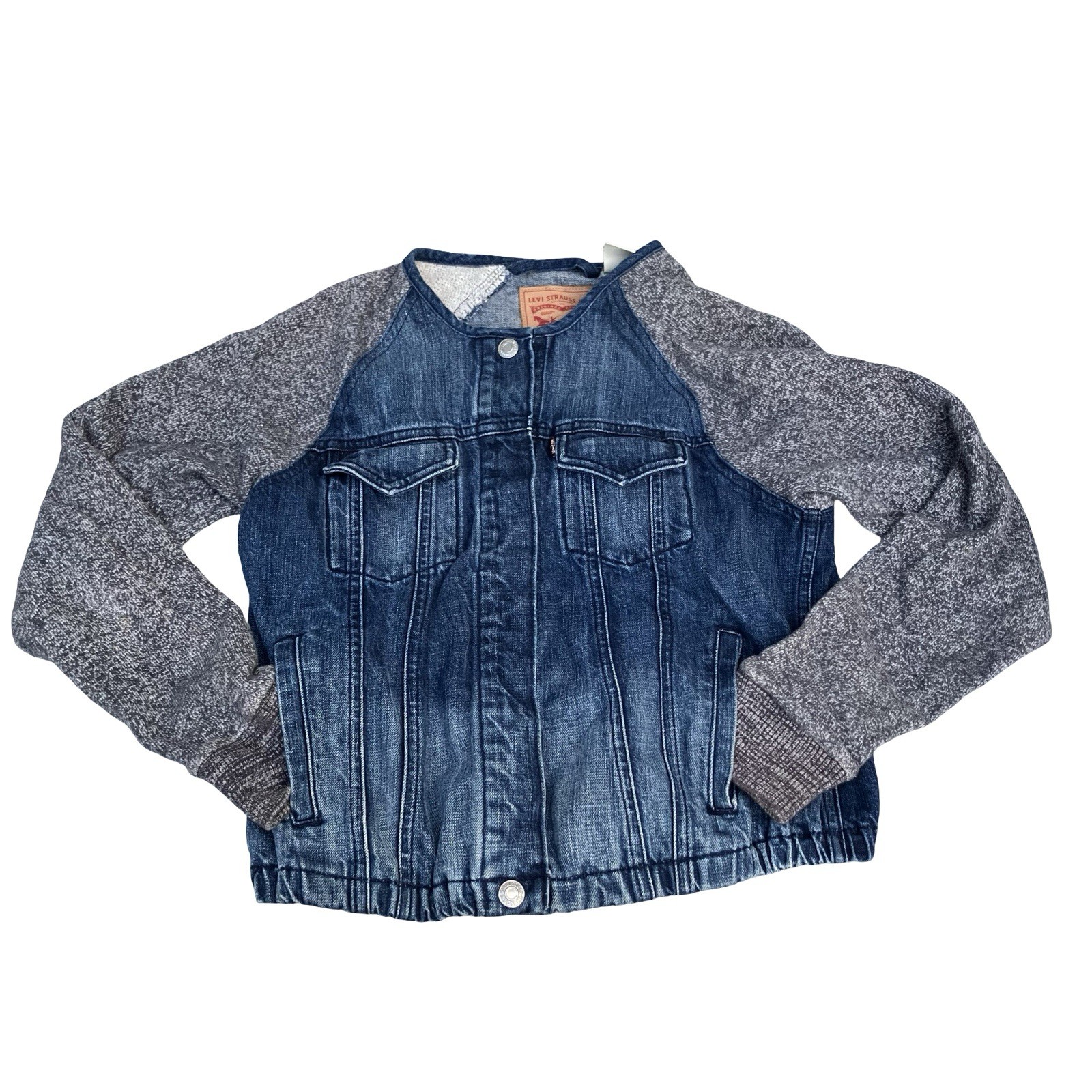 Levi s Jean Denim Jacket Knit Sleeves Kids Medium 100 Cotton Bomber Pockets
