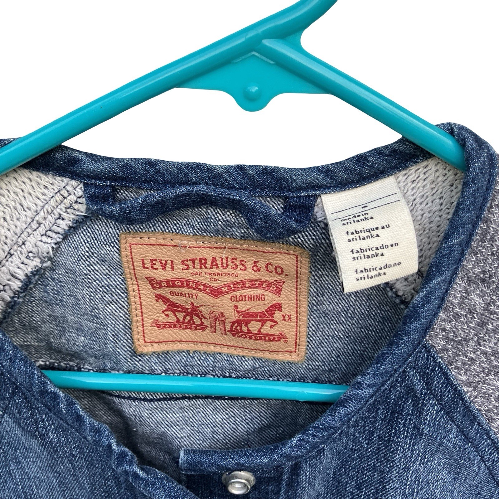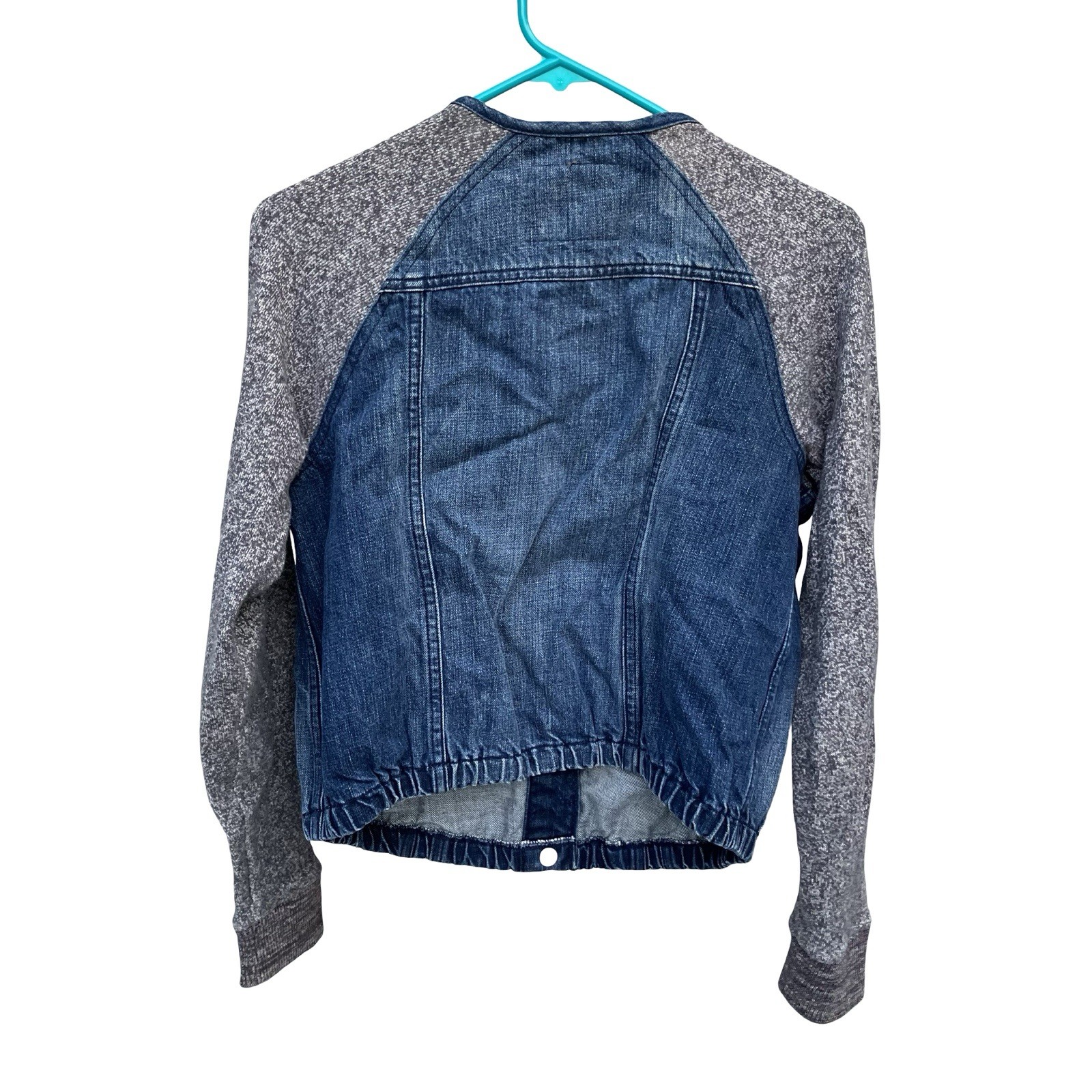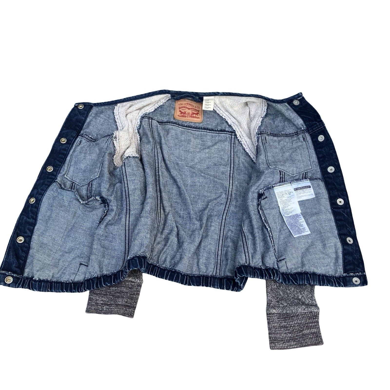 как выглядит Levi s Jean Denim Jacket Knit Sleeves Kids Medium 100 Cotton Bomber Pockets фото