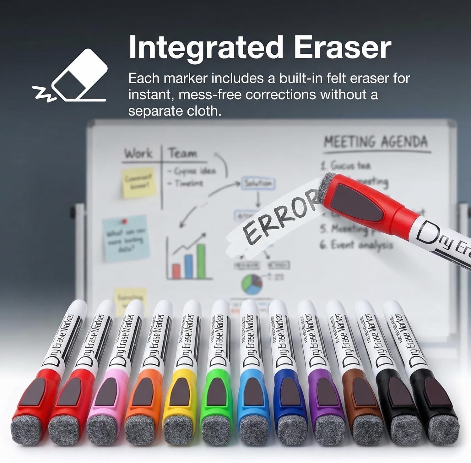 Magnetic Dry Erase Markers with Eraser Low Odor Fine Tip Whiteboard Pens Pack