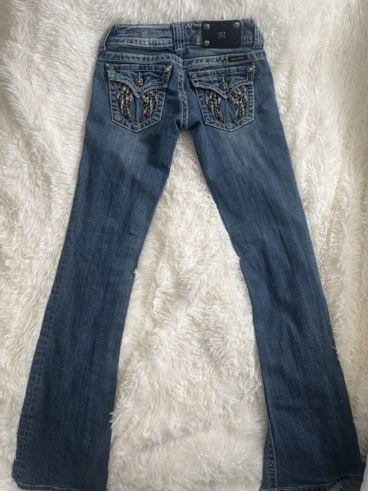 Miss Me Bootcut Blue Jeans Embroidered Beaded Decorative Pockets Women s Denim