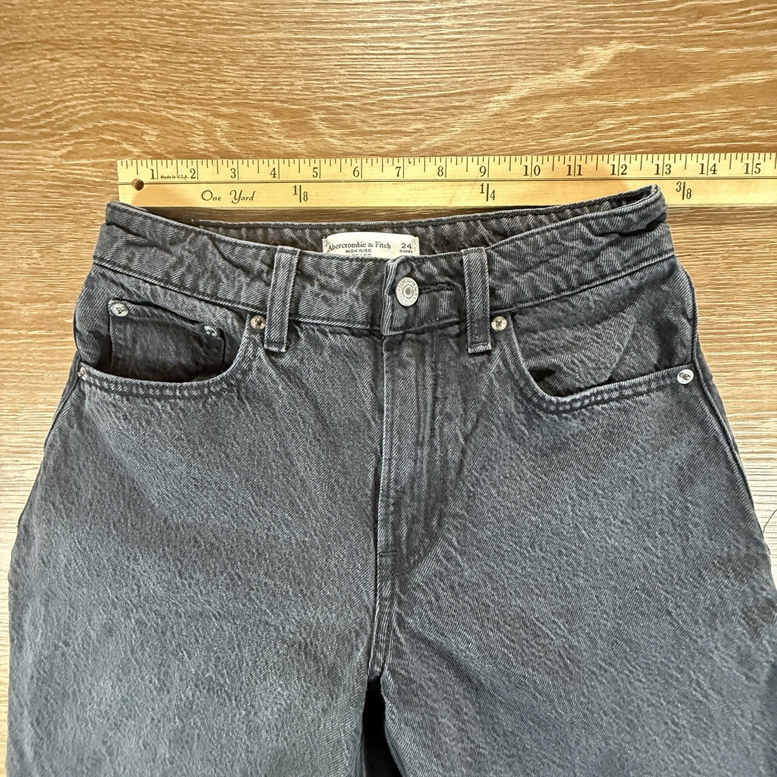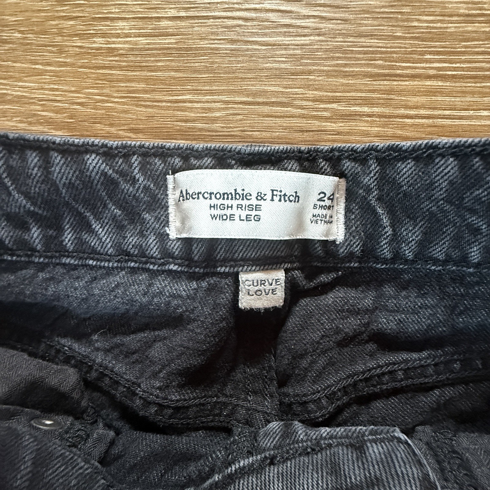 как выглядит Abercrombie Fitch Curve Love Jeans Women s 24 Short High Rise Wide Leg Black фото
