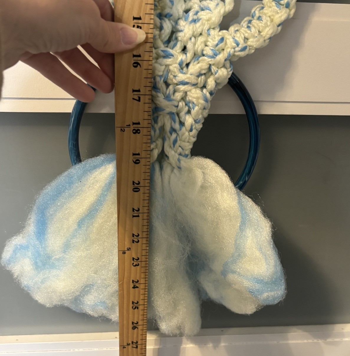Vintage 1970s Handmade Macrame Blue Fluffy Owl Towel Holder Blue Eyes 26