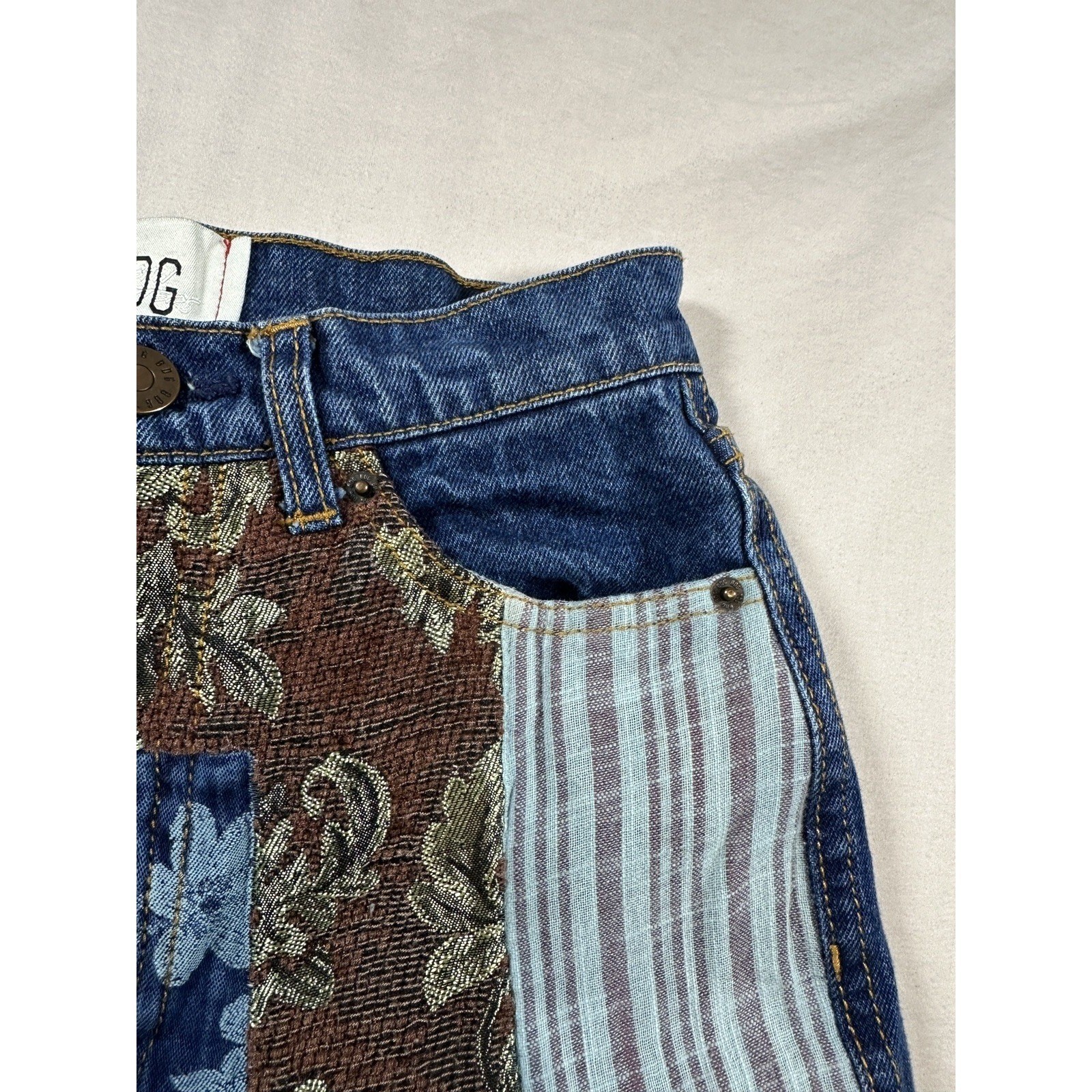 BDG Urban Outfitters Patchwork Wide Leg Jeans Tapestry Velvet Blue Denim 24