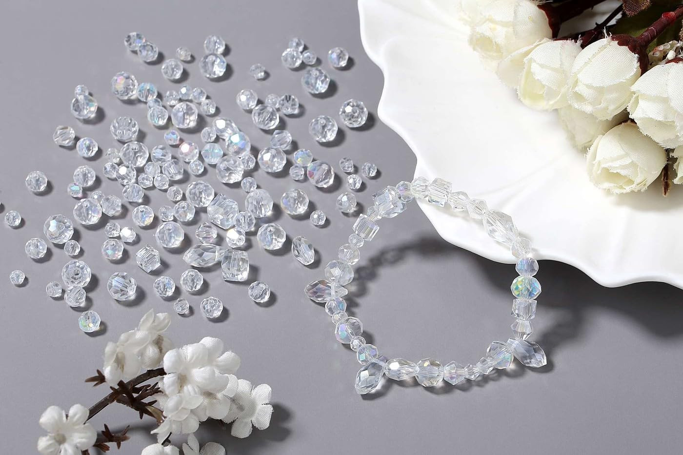800PCS Glass Beads AB Color Crystal Beads Assorted Crystal Beads with Container