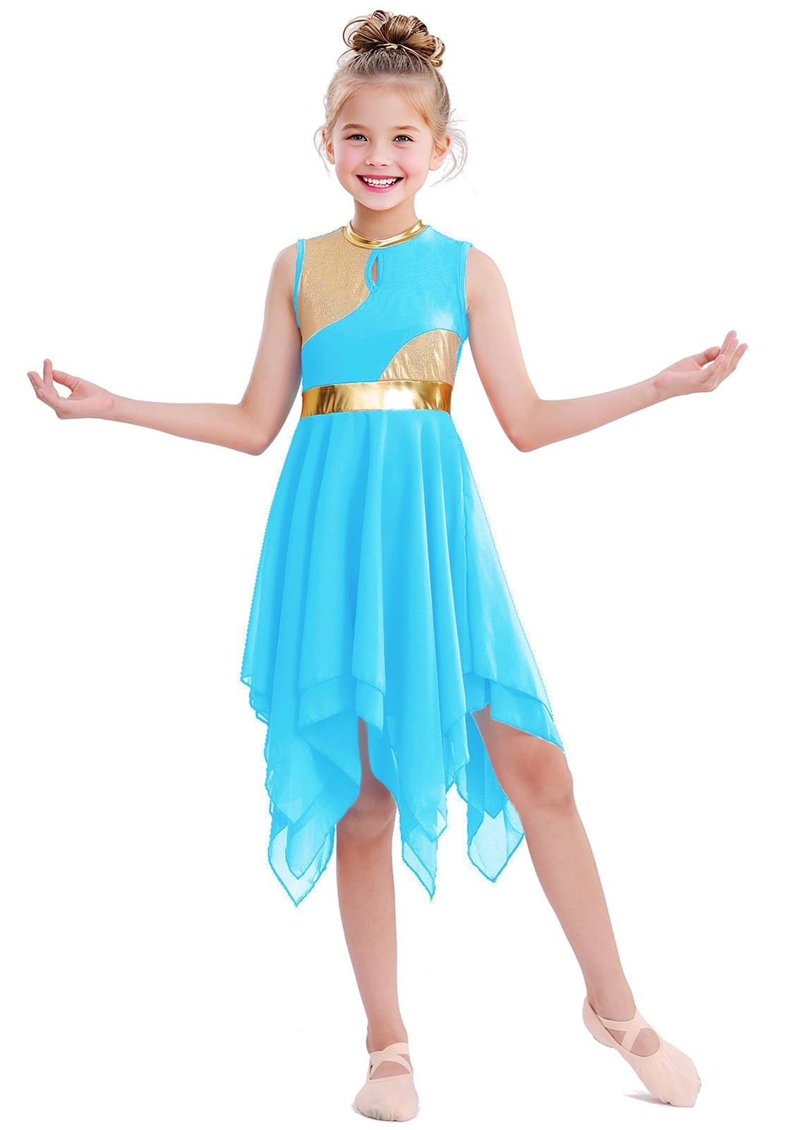 Girl's Praise Dance Overlays and Tunics Metallic Color Liturgical Dancewear I...