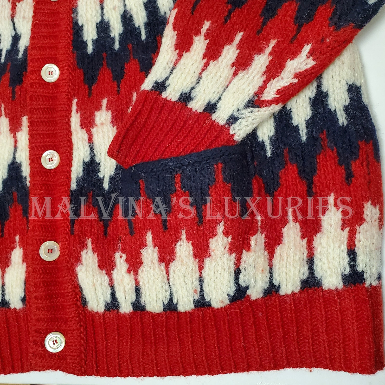 как выглядит GUCCI MENS SWEATER ZIGZAG JACQUARD THICK WOOL KNITTED CARDIGAN 1,250 M Medium фото