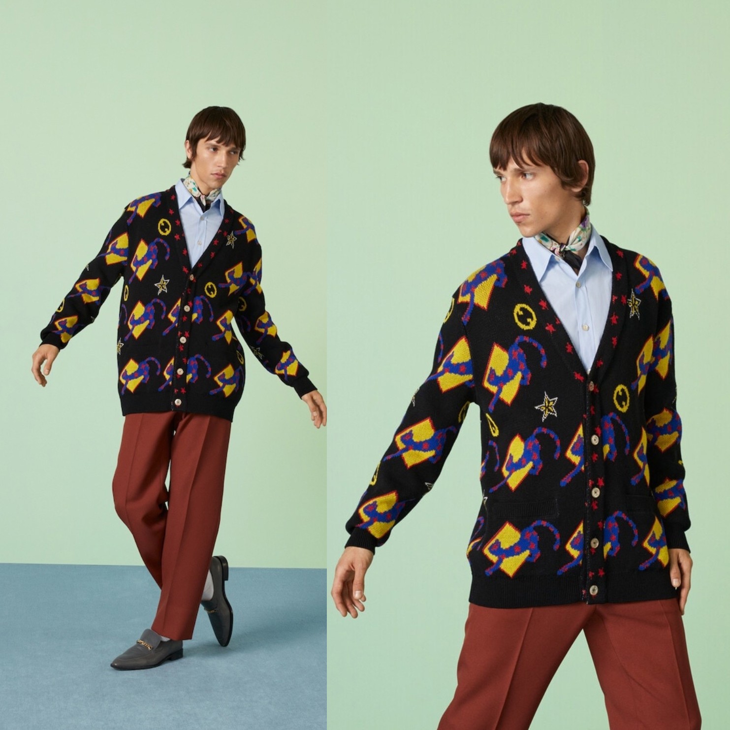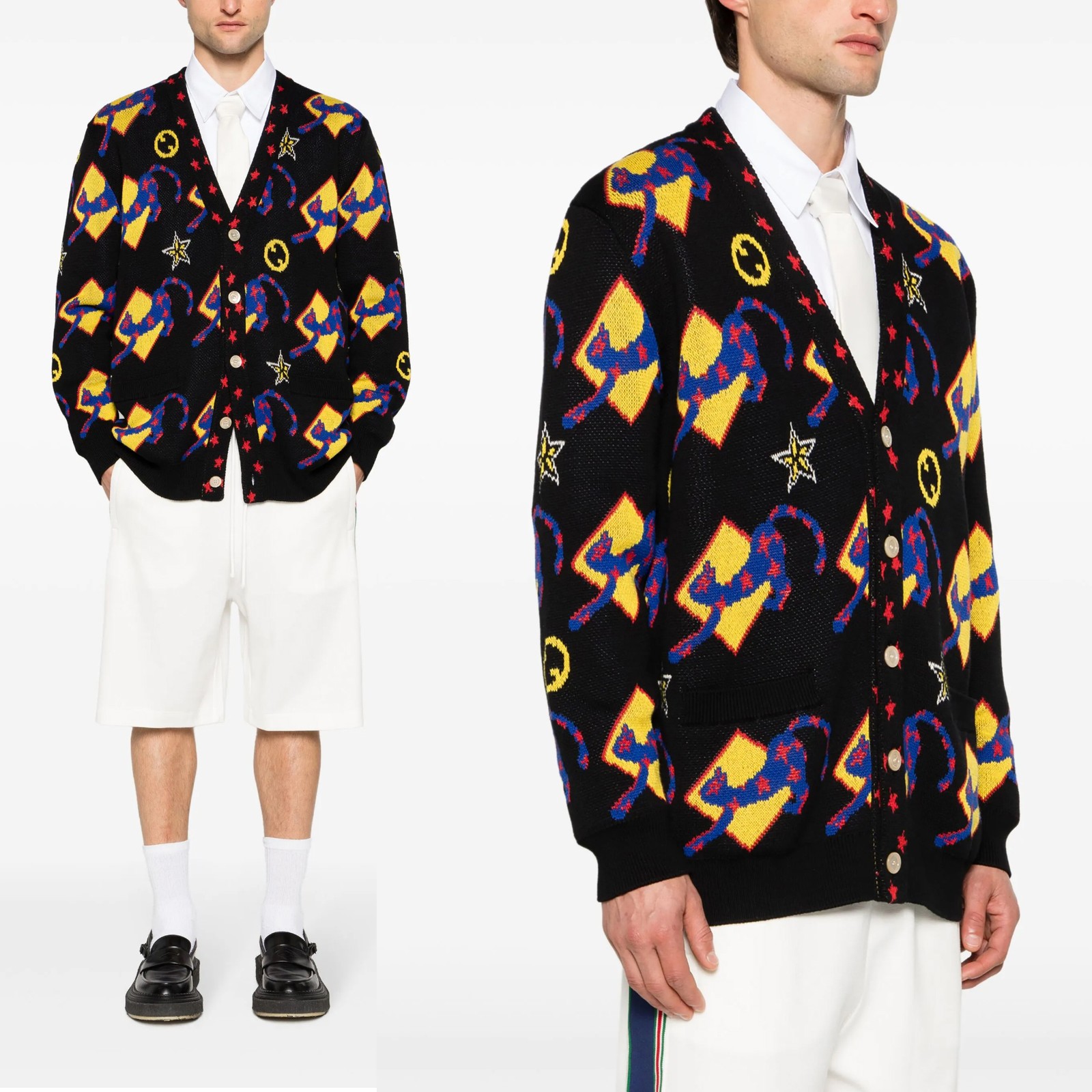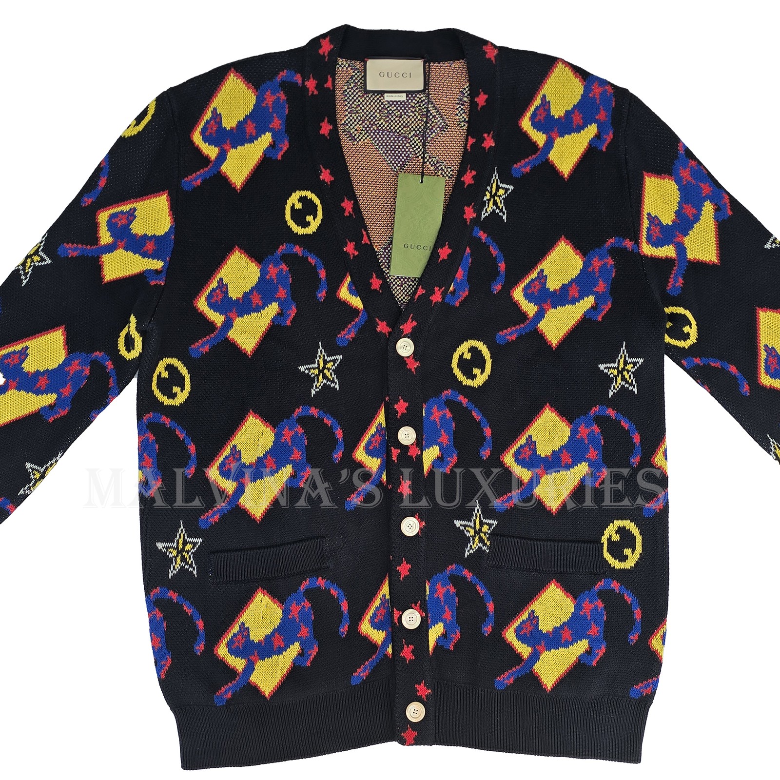 GUCCI MENS SWEATER COTTON WOOL INTARSIA CARDIGAN w LOGO 2,350 sz L LARGE