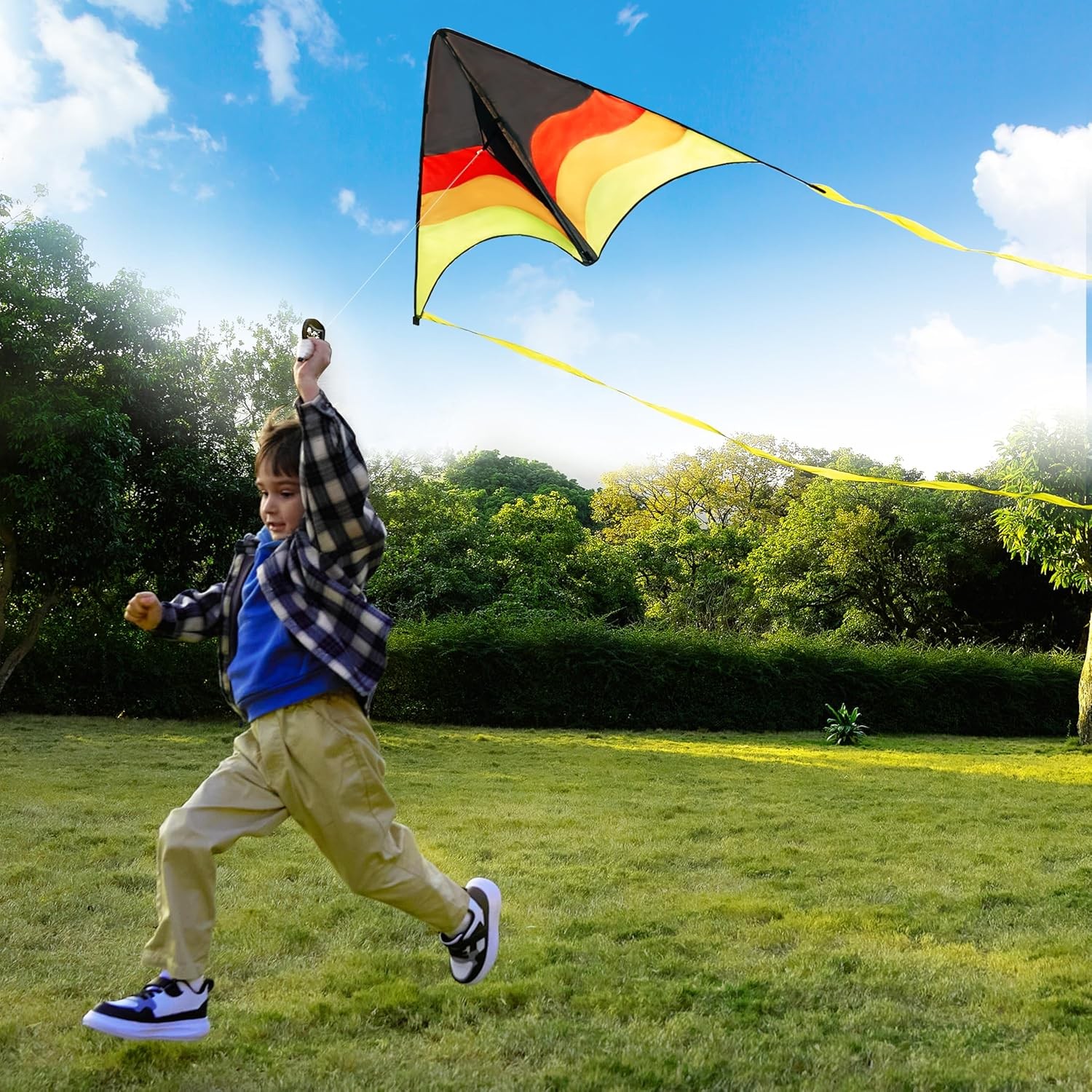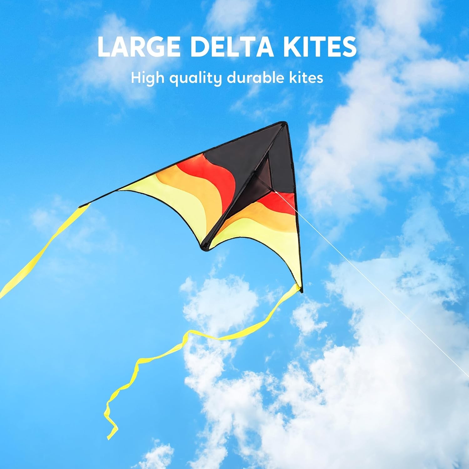 Large Delta Kite Gradient Yellow Easy to Fly for Kids and Adults, Beach Kite wi