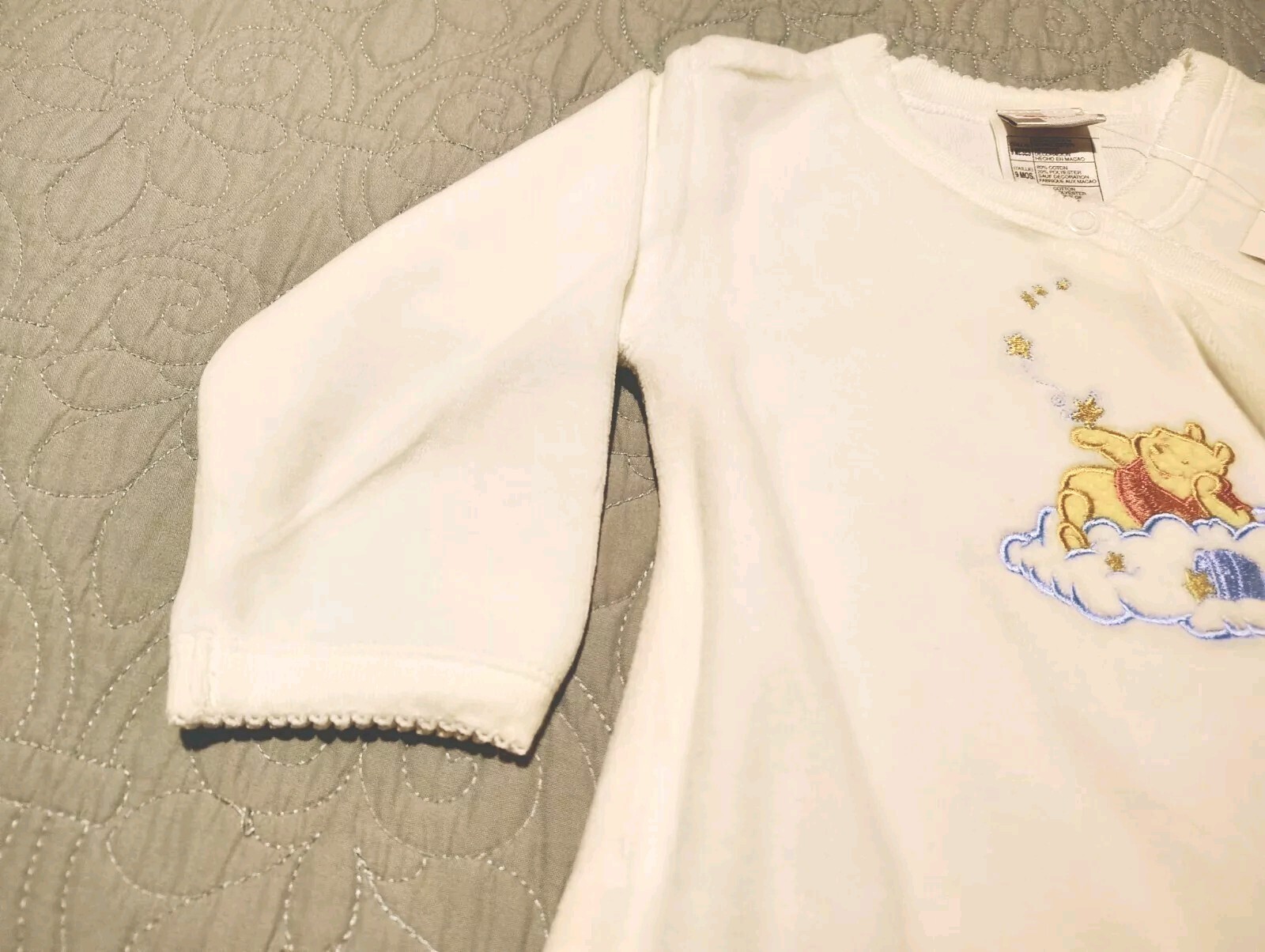 как выглядит Vtg Disney Winnie The Pooh 1pc Embroidered 9mos Baby Outfit Velour NWT фото