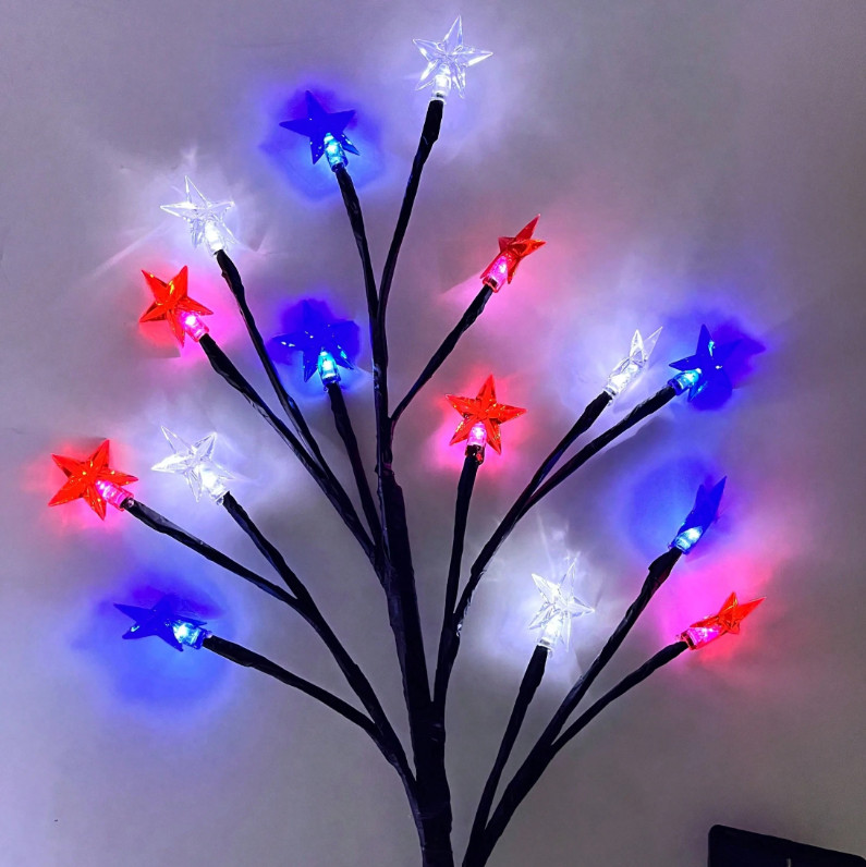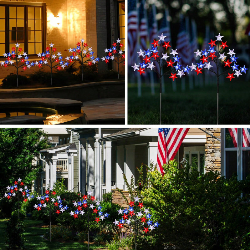 5-Head Red White Blue Solar Garden Lights Patriotic 4th of July Pathway Decor