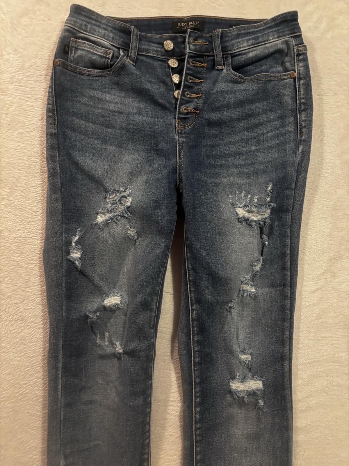 как выглядит Judy Blue Skinny Jeans Womens 7/28 Distressed Button Fly Raw Hem Skinny Fit фото