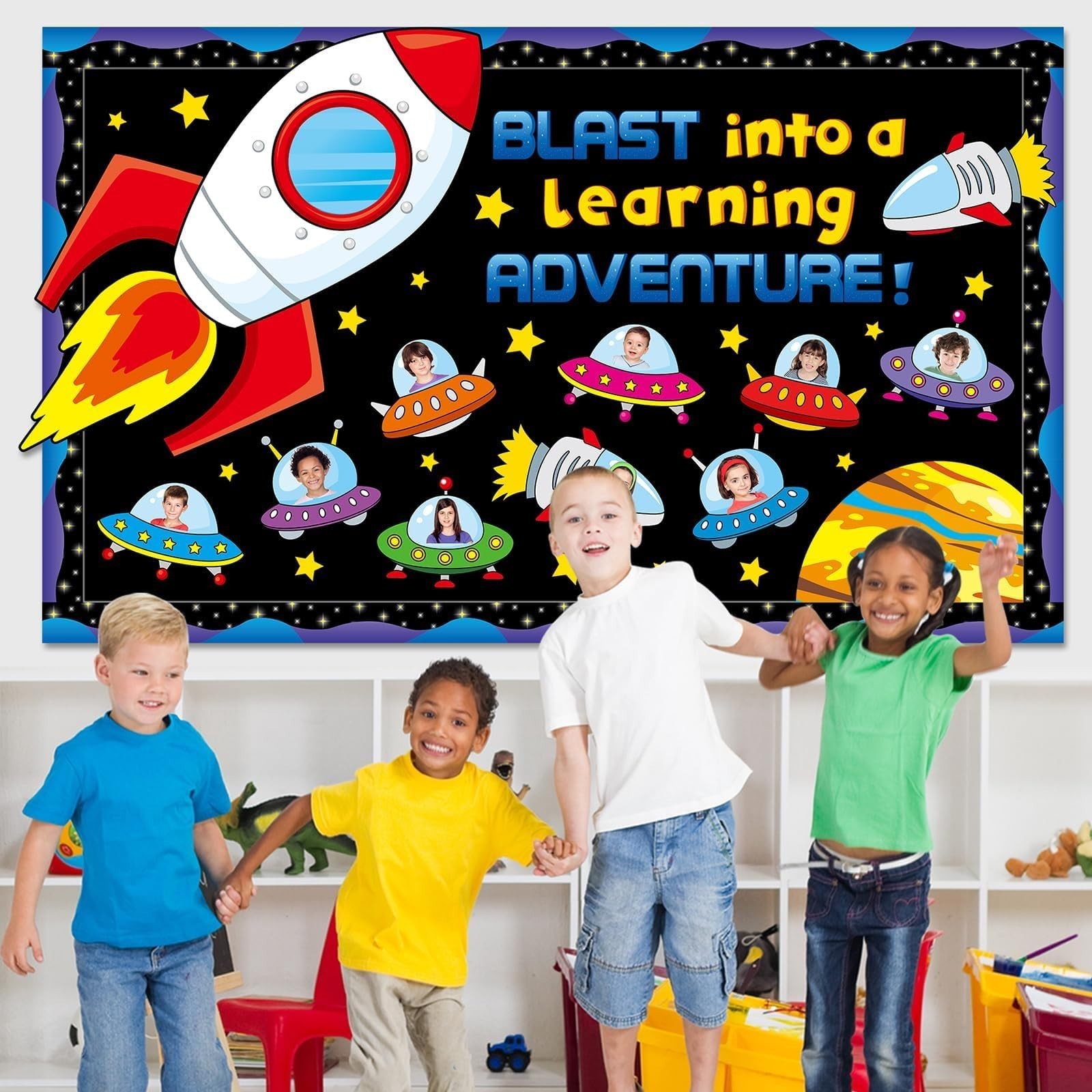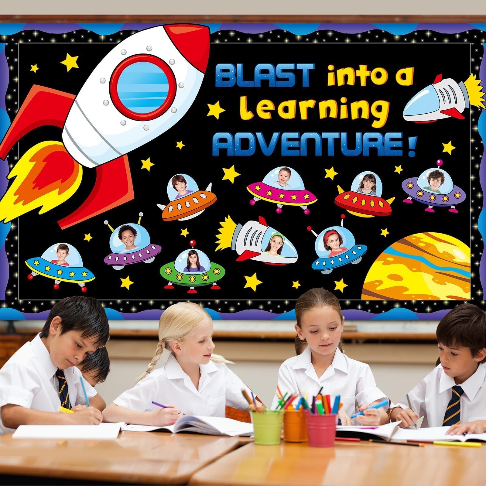 как выглядит Outer Space Bulletin Board Set Blast into A Learning Adventure Classroom Bull... фото