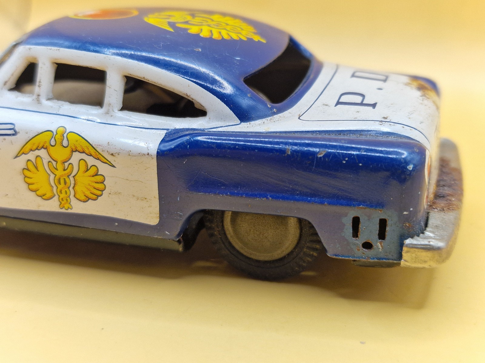 как выглядит Vintage Japan Tin Police Car 13cm 5.1" Made in Japan Litho Toy Sedan фото