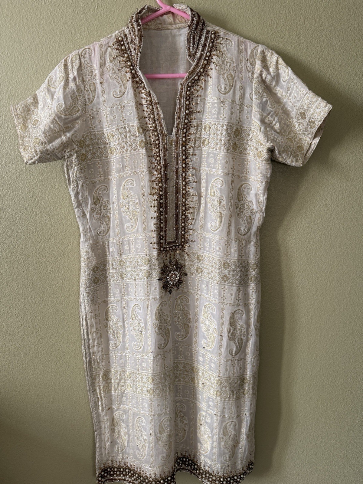 как выглядит Elegant White Hand Embroidered Kurta  Formal / Festive Wear фото