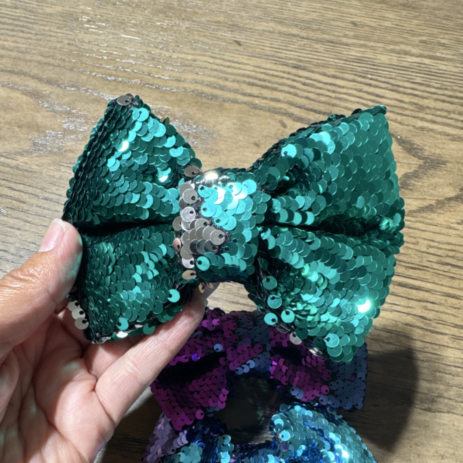 как выглядит Girls Lot of 3 Sequin Hair Bows Multicolor Reversible Party Accessory фото