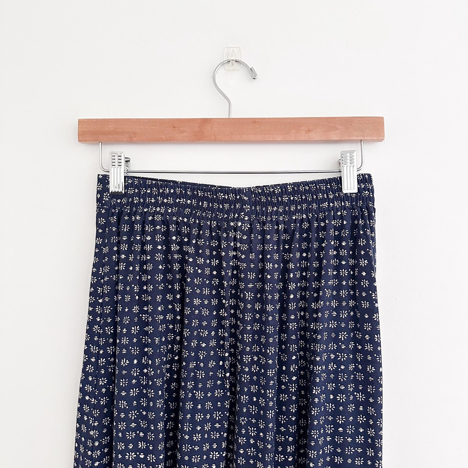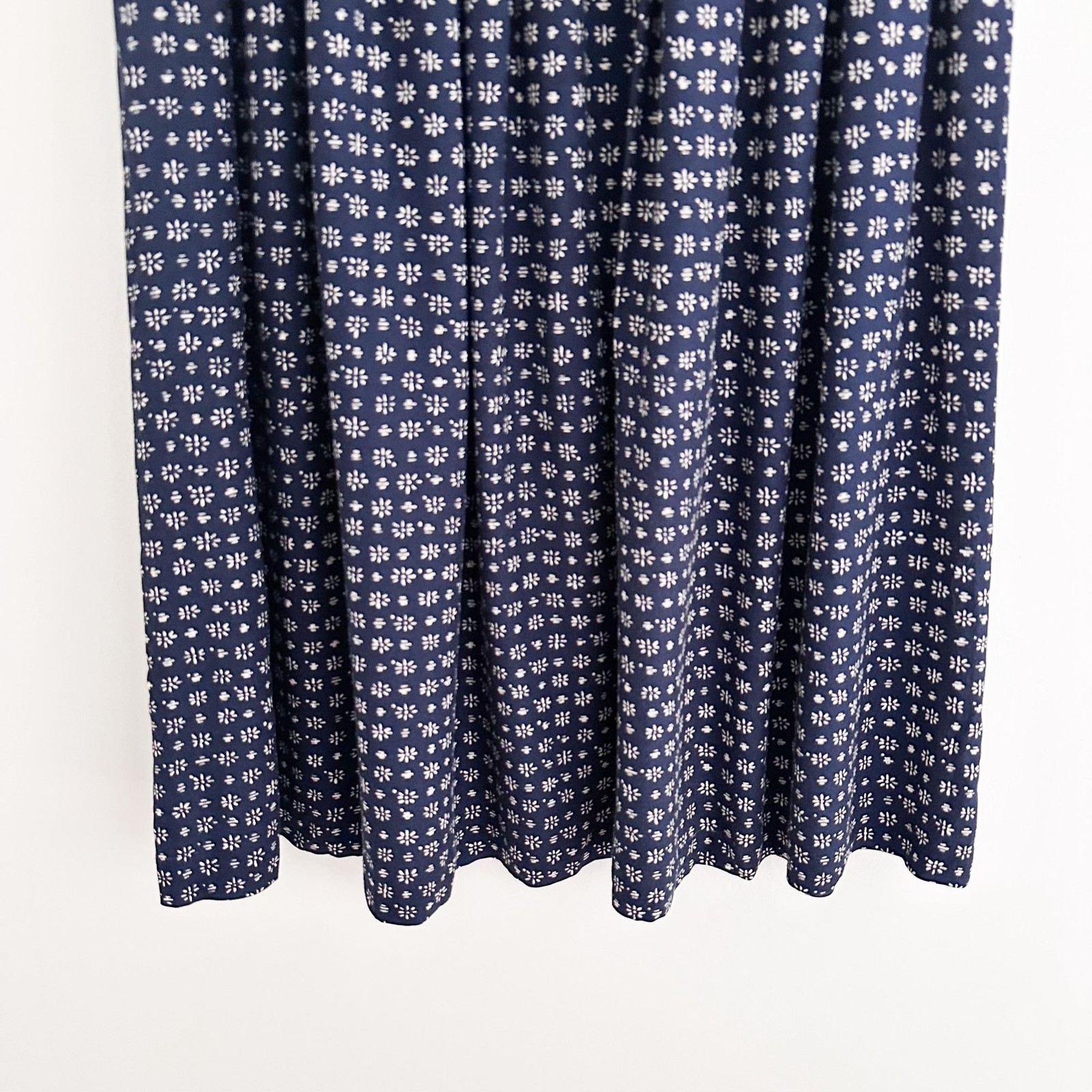 Vintage 90s Rayon Midi Skirt Navy Ditsy Floral Pleated Made in USA Size S