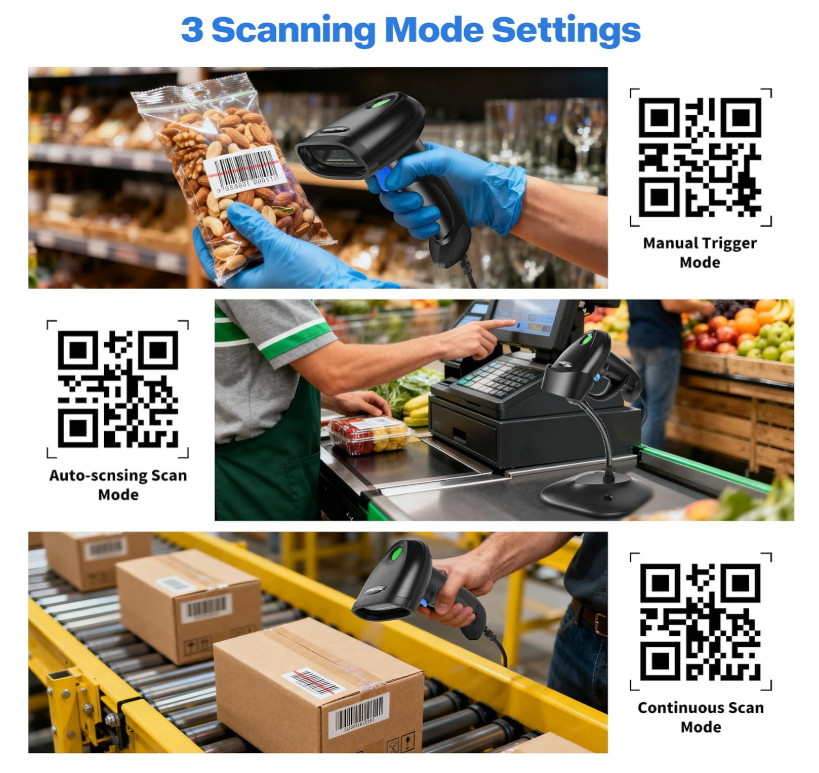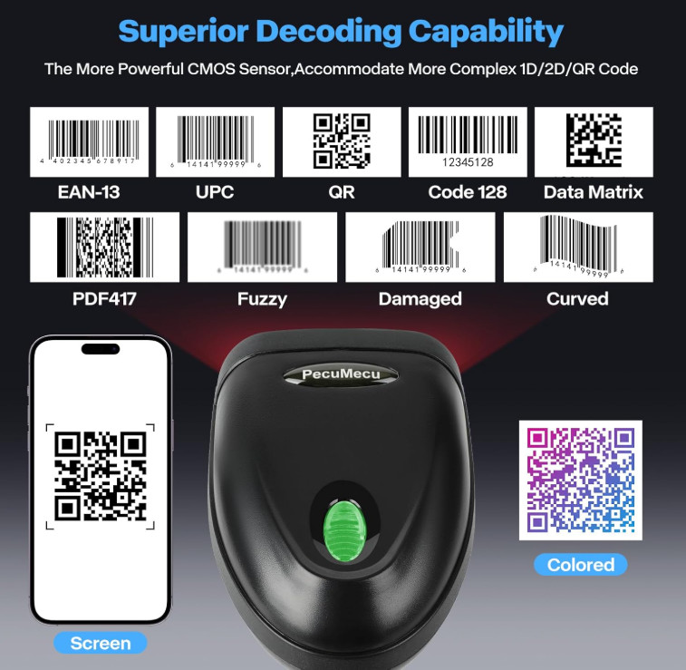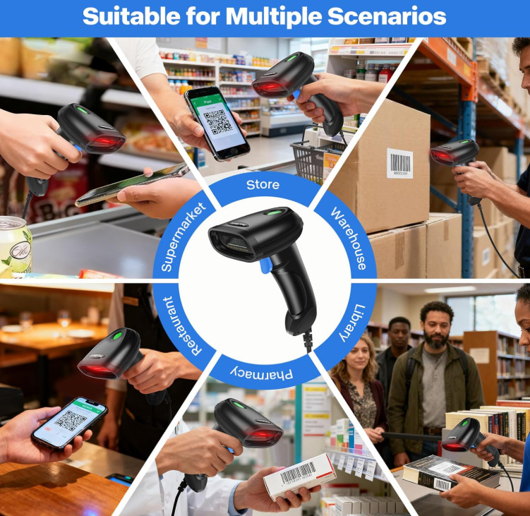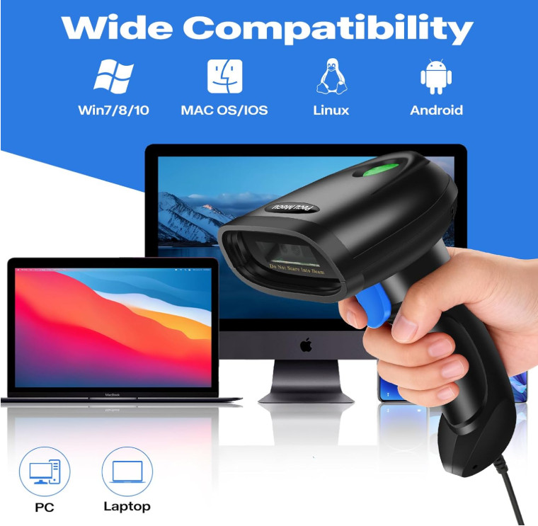 Handheld 1D 2D USB Barcode Scanner, Wired QR Code Scanner