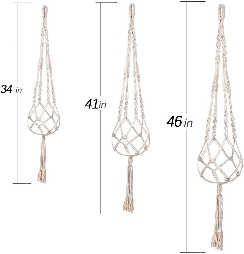 как выглядит 3 Pack Macrame Plant Hanger Indoor Hanging Planter Holder with 3 Hooks, 46"/4... фото