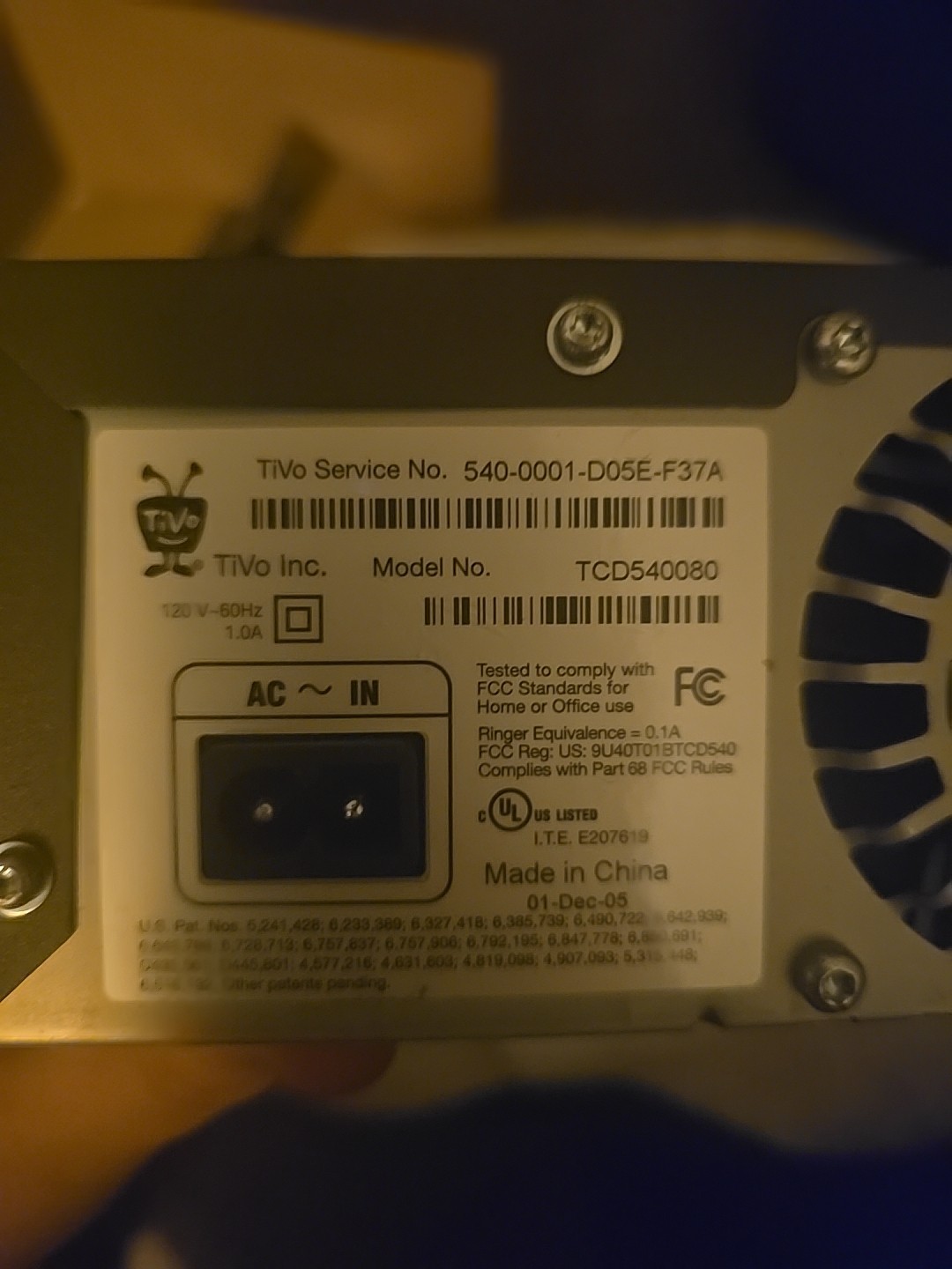 Модель: TiVo TCD540080