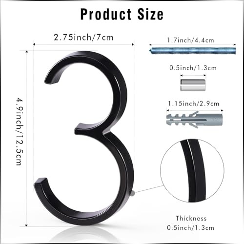 5 Inch Floating House Number 3, Black Metal Modern 5 inch black Black 3