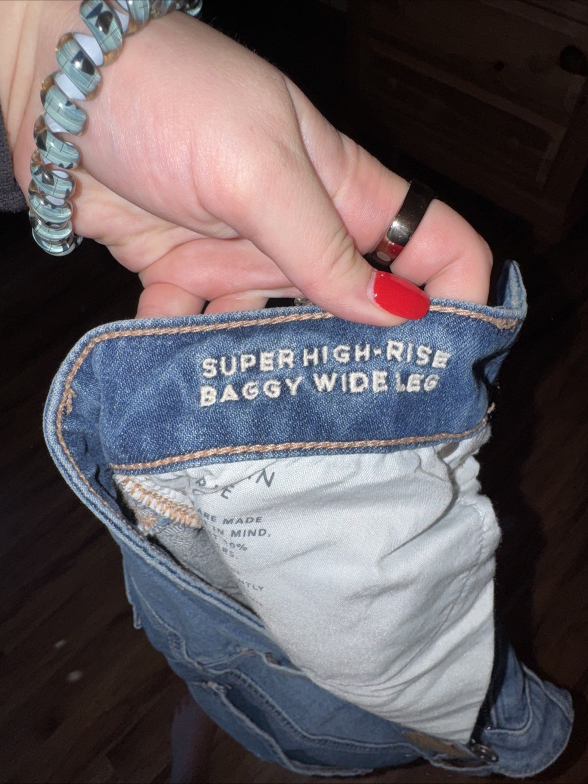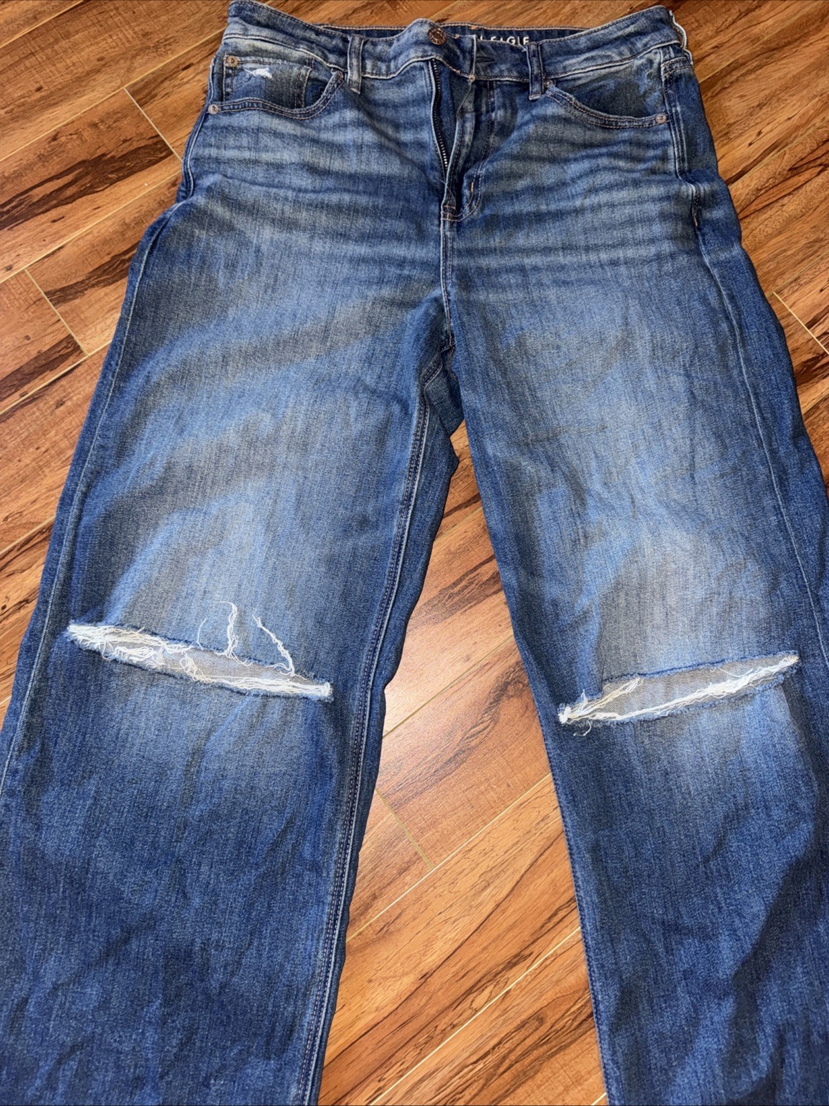 как выглядит American Eagle Outfitters Womens Jeans Long 8 Super High Rise Baggy Wide Leg фото
