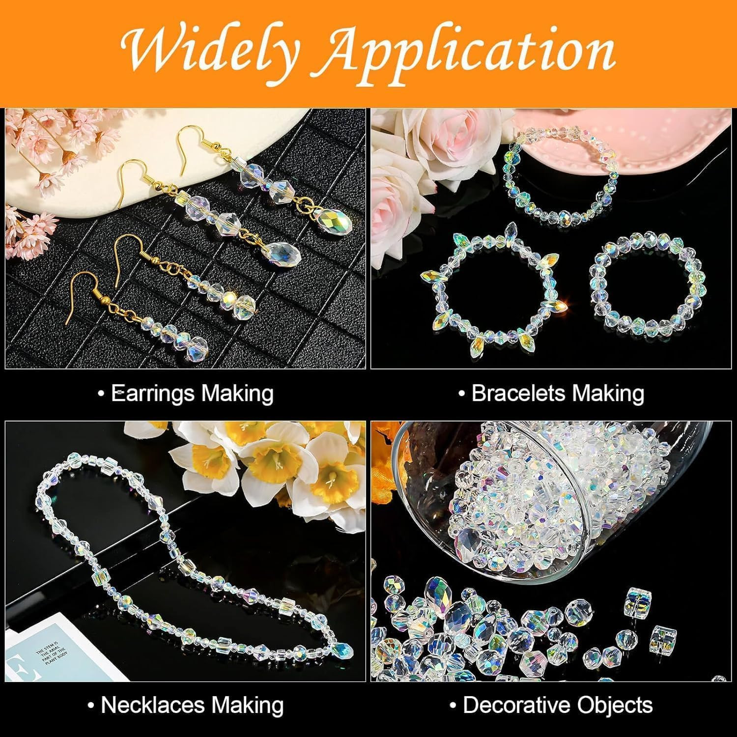 Crystal Beads, 800 Pcs Crystal Glass Beads Bulk, Clear Crystal Beads for Jewelry