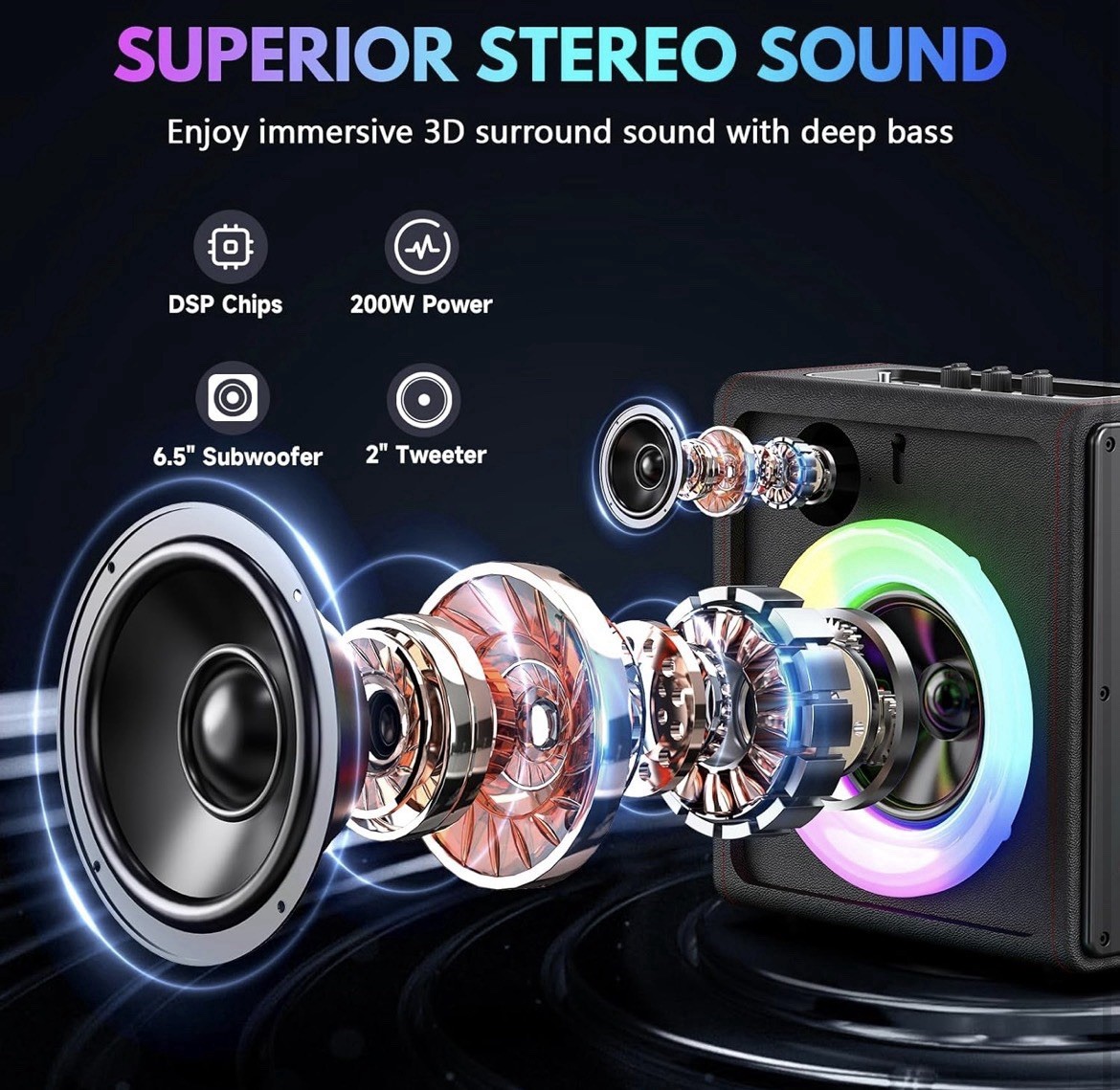 Karaoke Machine, Portable Bluetooth 5.3 Speaker with 2 Wireless Microphones