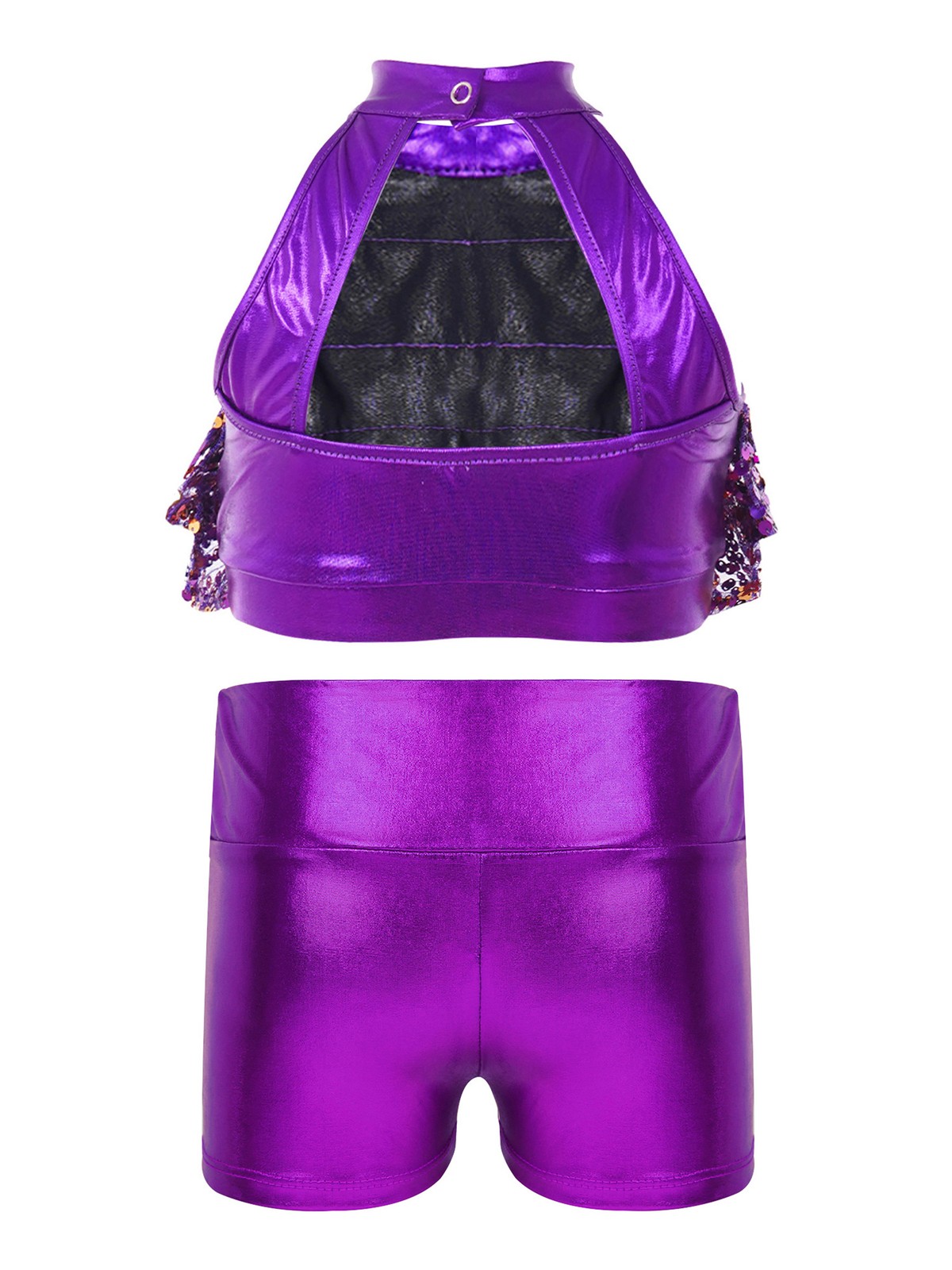 как выглядит Kids Girls Dancewear Jazz Outfits Stage Set Shiny Backless Performance Ballroom фото