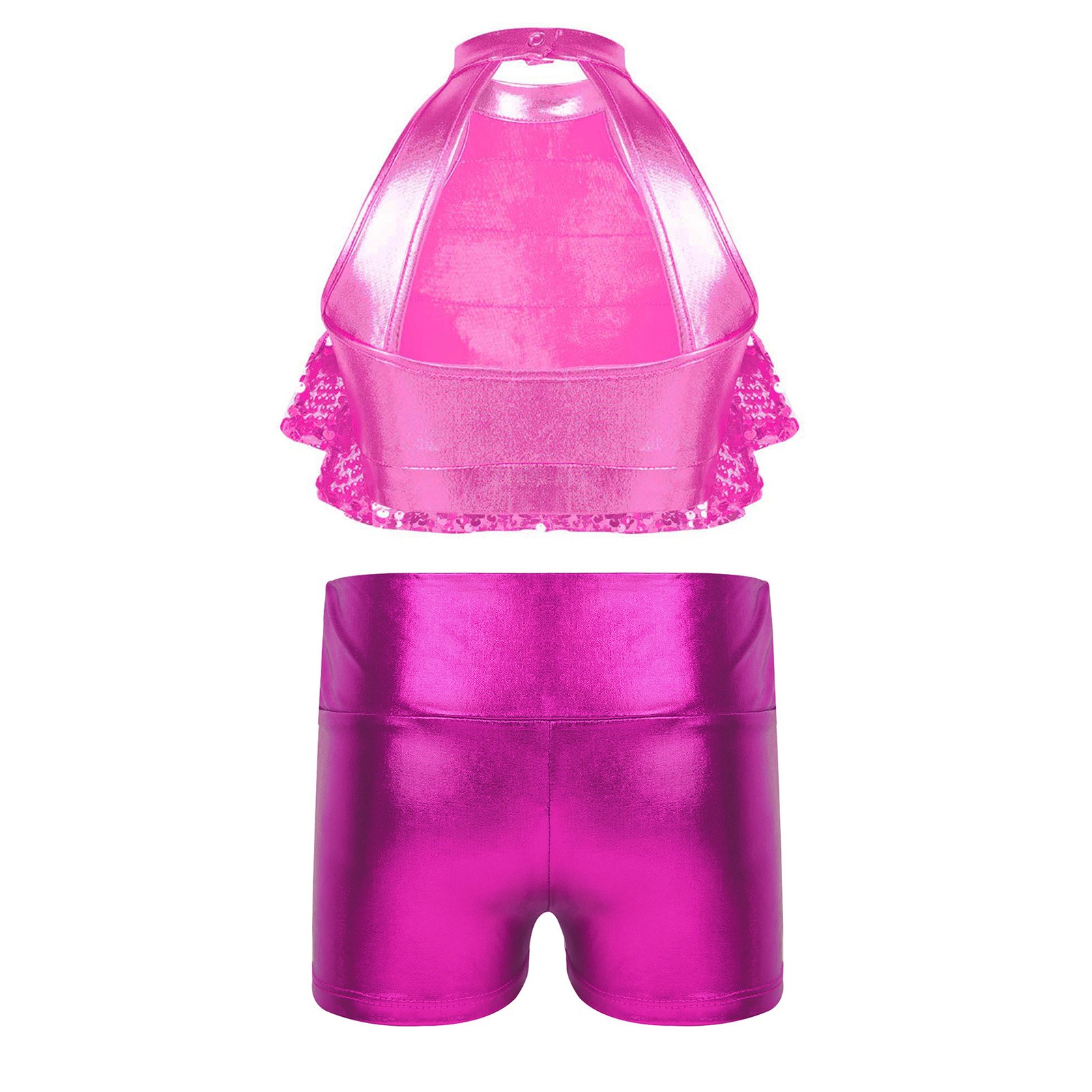 как выглядит Kids Girls Dancewear Jazz Outfits Stage Set Shiny Backless Performance Ballroom фото