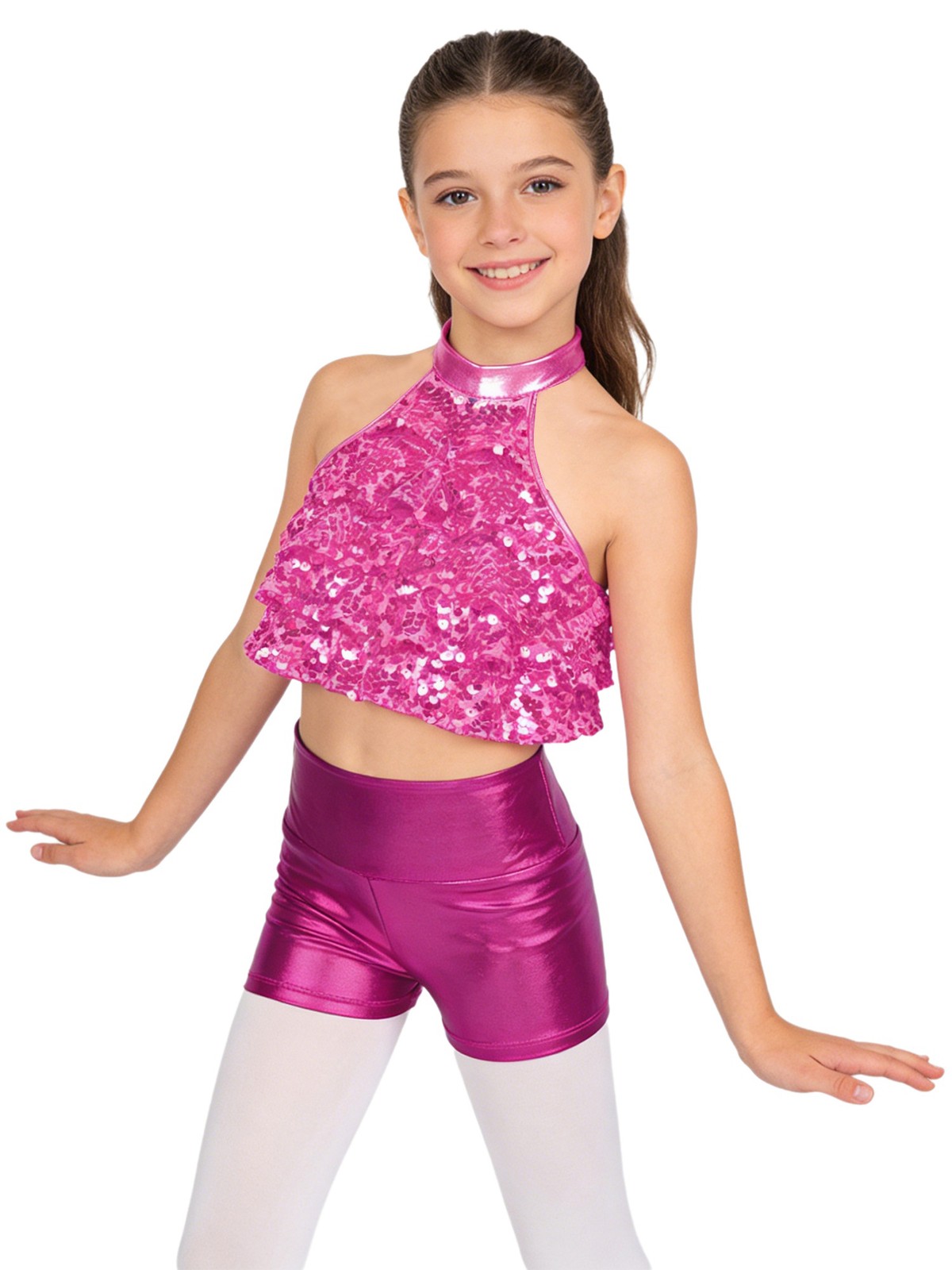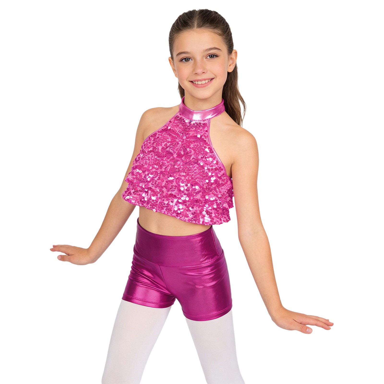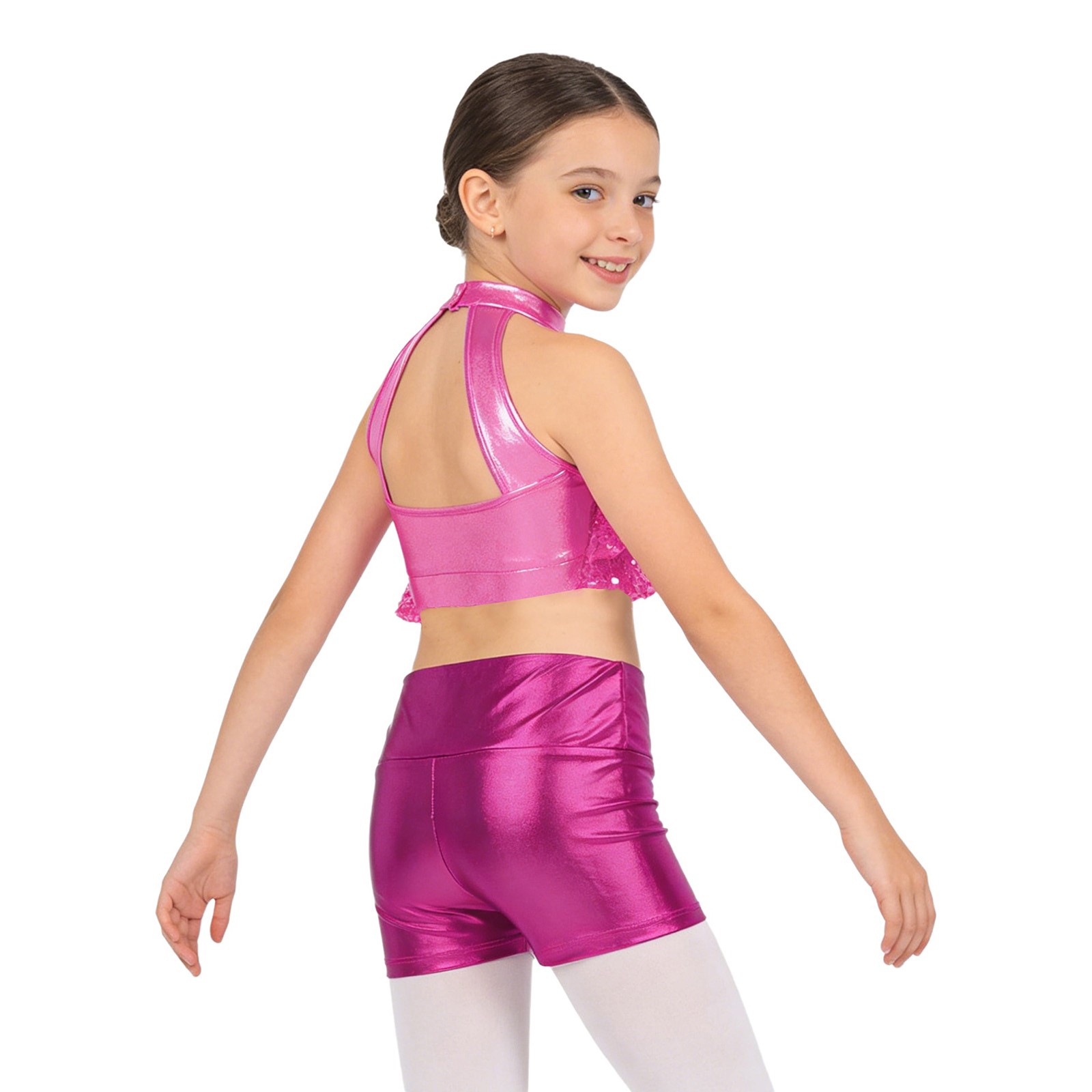 Kids Girls Dancewear Jazz Outfits Stage Set Shiny Backless Performance Ballroom