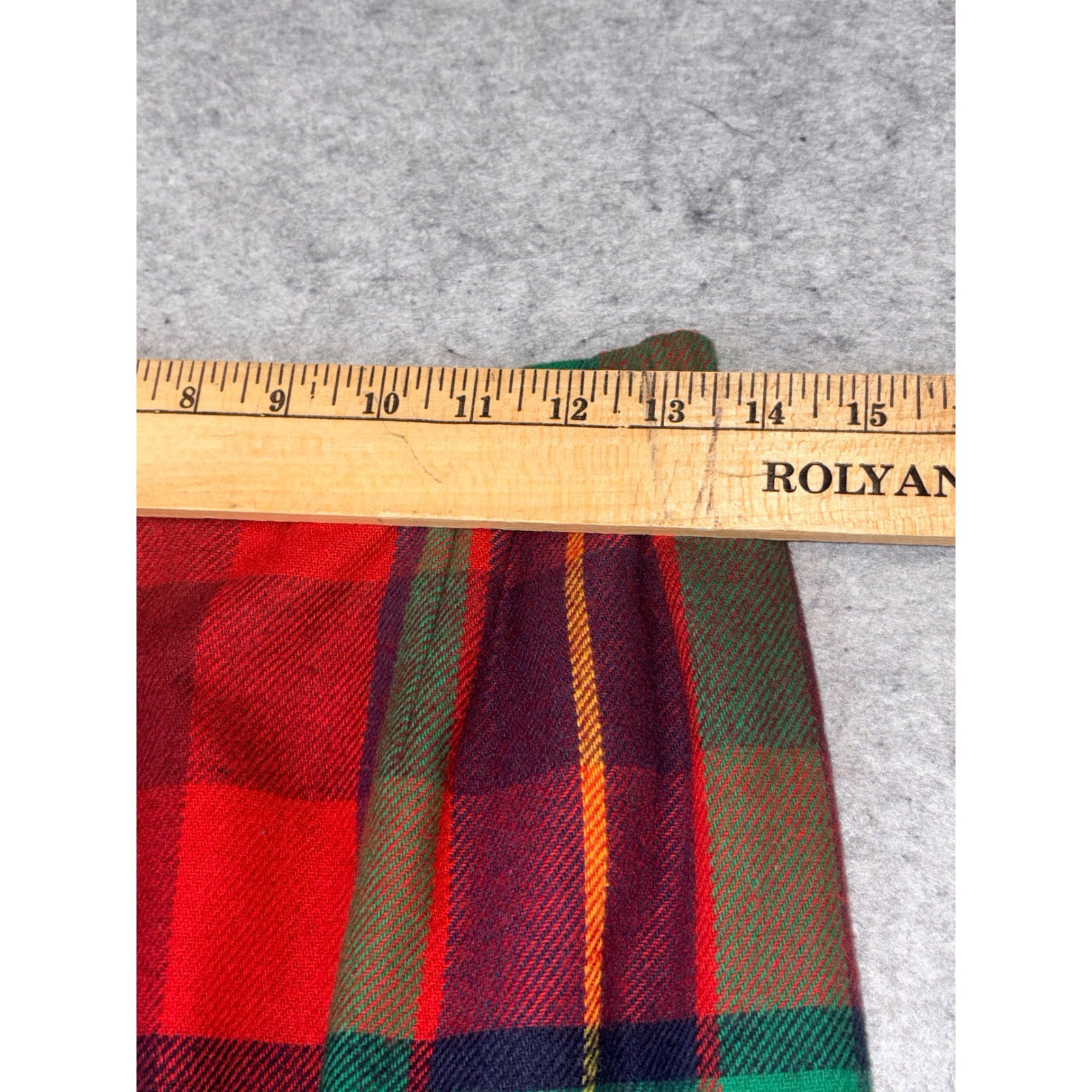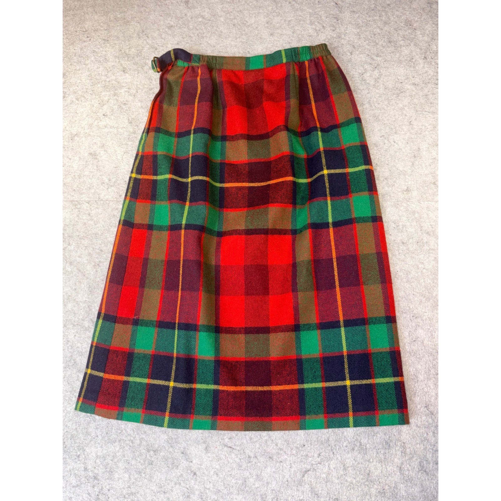 Vintage Wool Plaid Kilt 10 Skirt Red Green Blue Tartan Pleated Midi Buckle Side