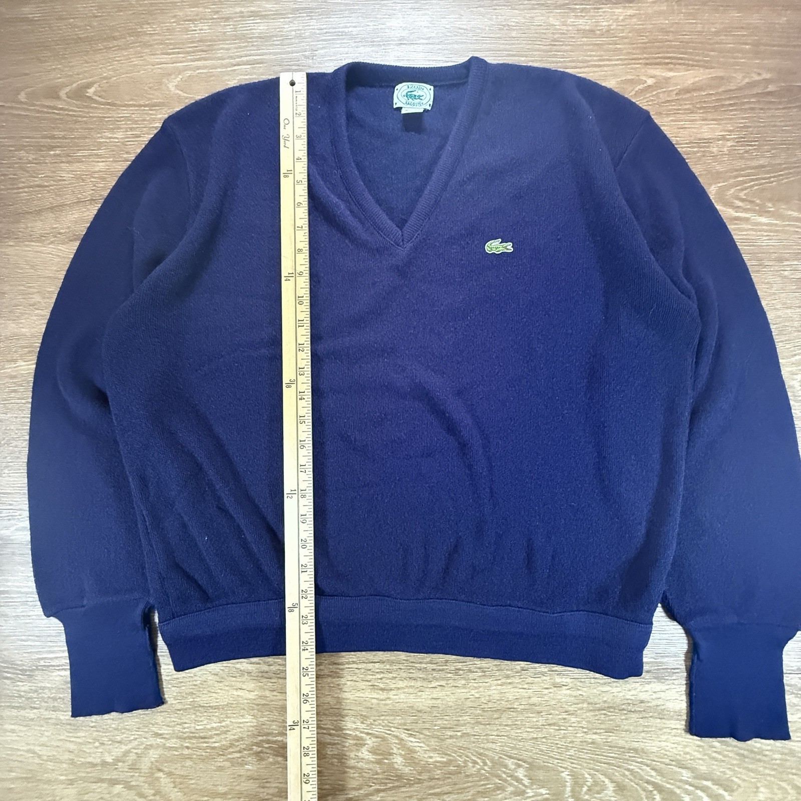 как выглядит Vintage 80s Izod Lacoste Sweater Men s XL Navy V Neck USA Made Preppy фото