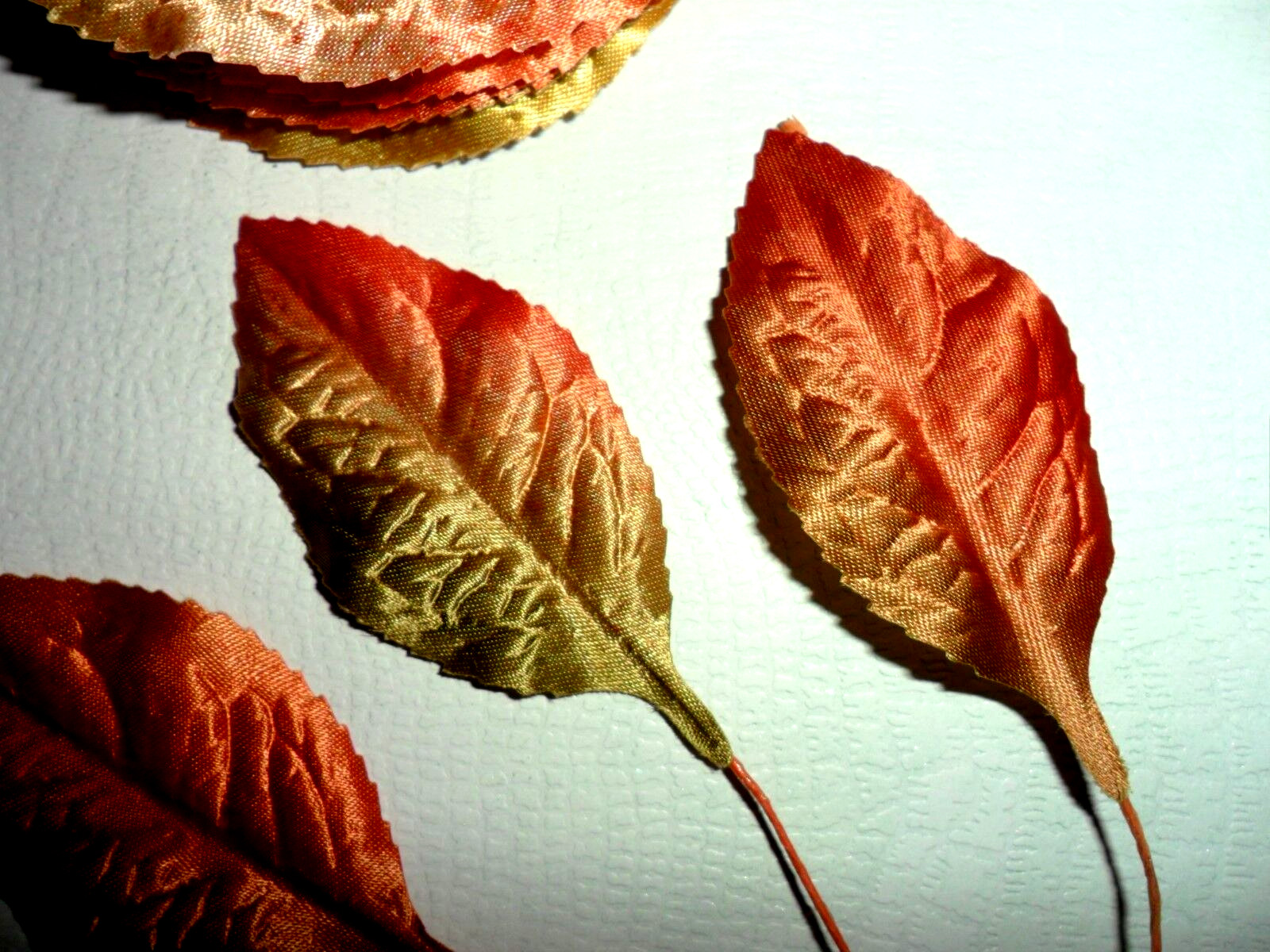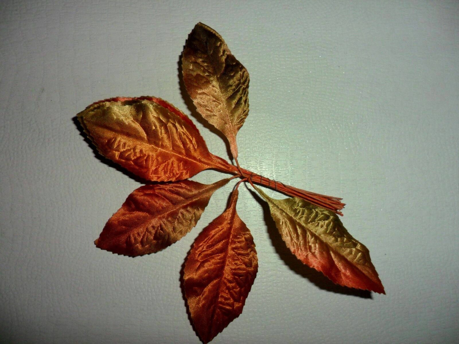 как выглядит VINTAGE MILLINERY FALL COLOR VARIGATED SATIN LEAVES - VINTAGE фото