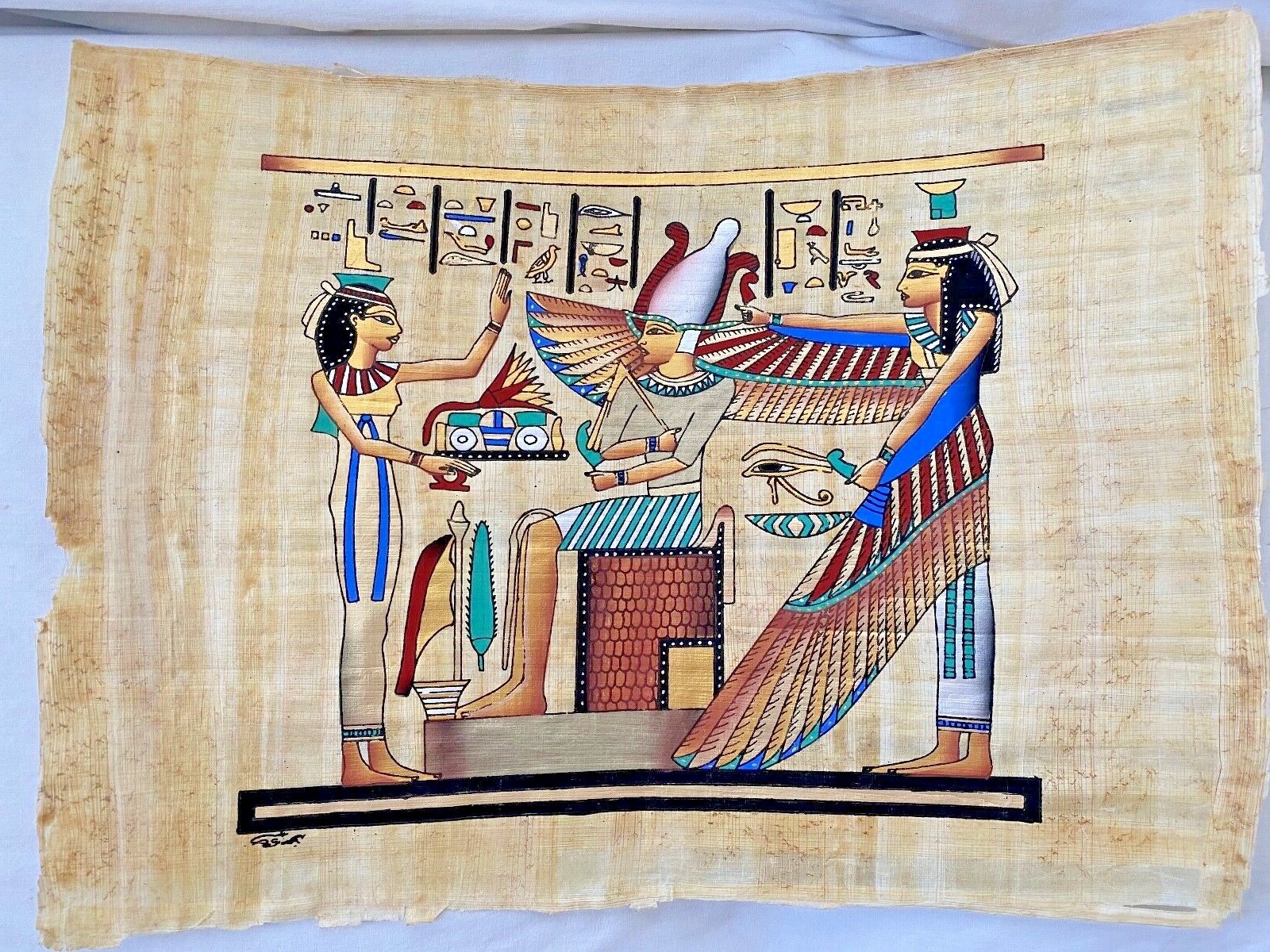 Egyptian Papyrus Paper Painting Winged Maat Goddess Isis 13 X17 Handmade
