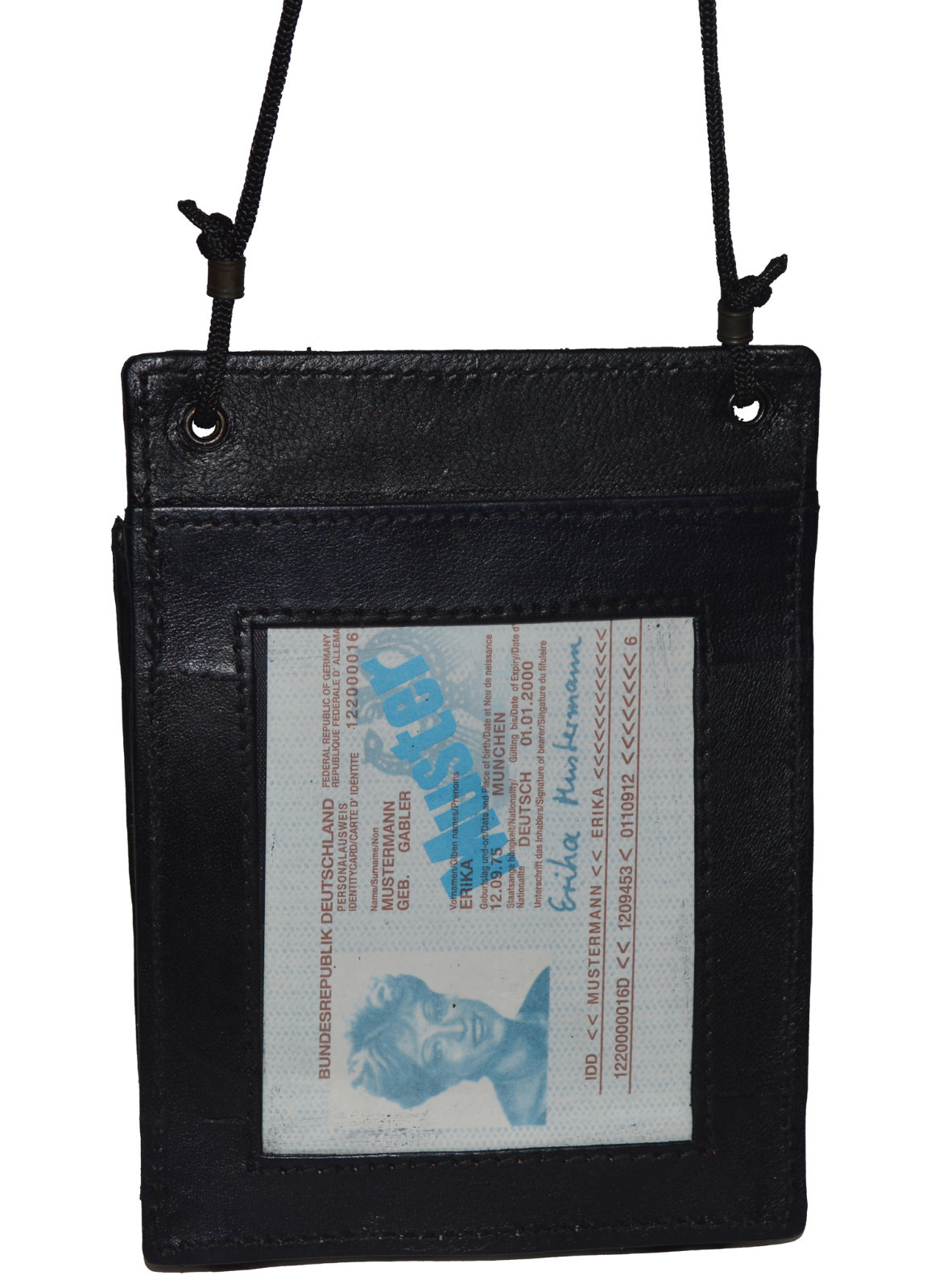 как выглядит Genuine Cow Leather I.D. Card Badge Holder Wallet/Pouch w/ Black Neck Strap New фото