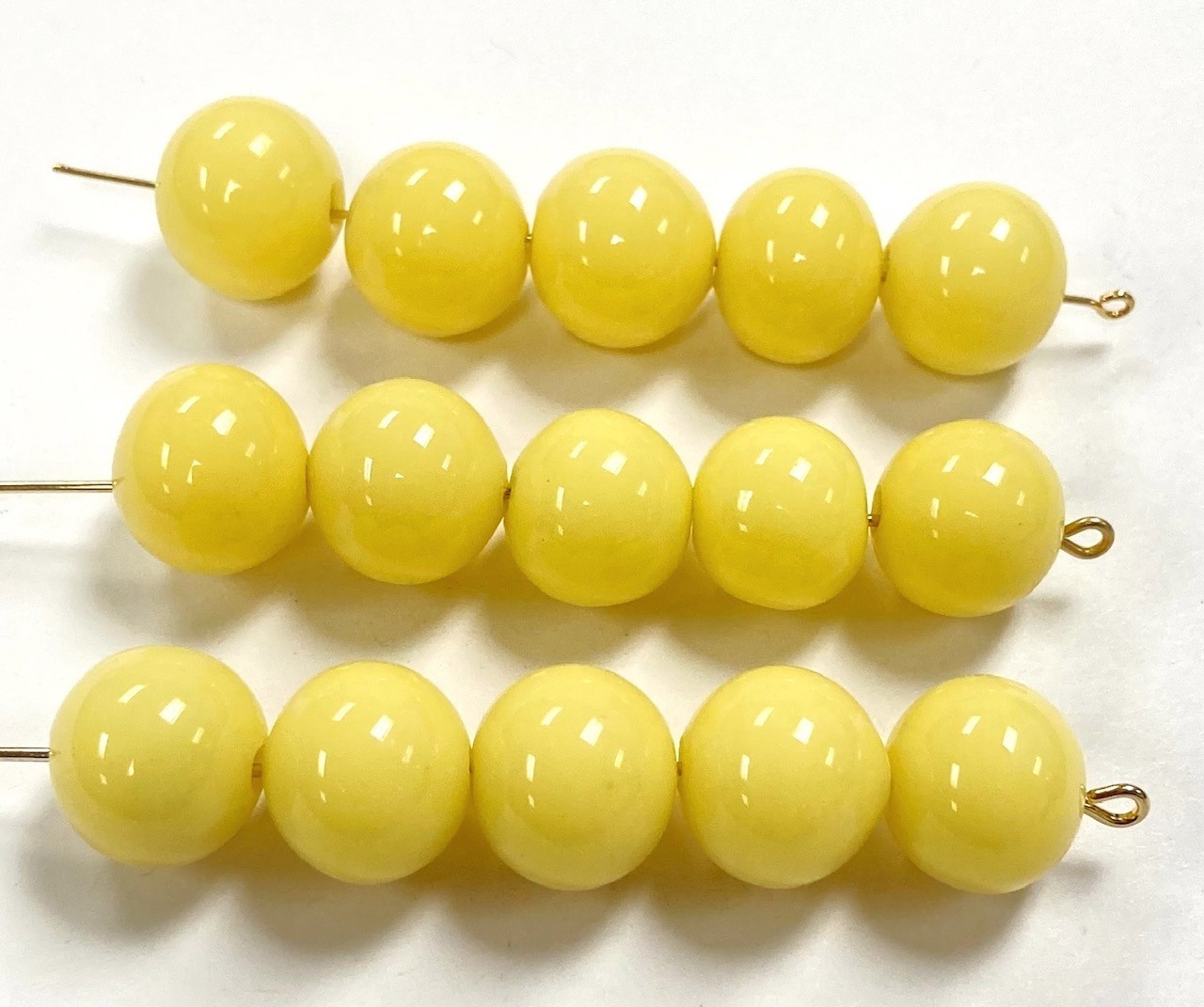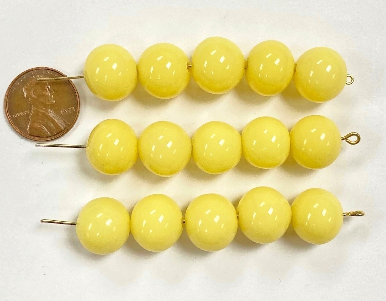 24 VINTAGE CHERRY BRAND GLASS PALE YELLOW 13mm. TO 14mm. ROUND LOOSE BEADS 4616